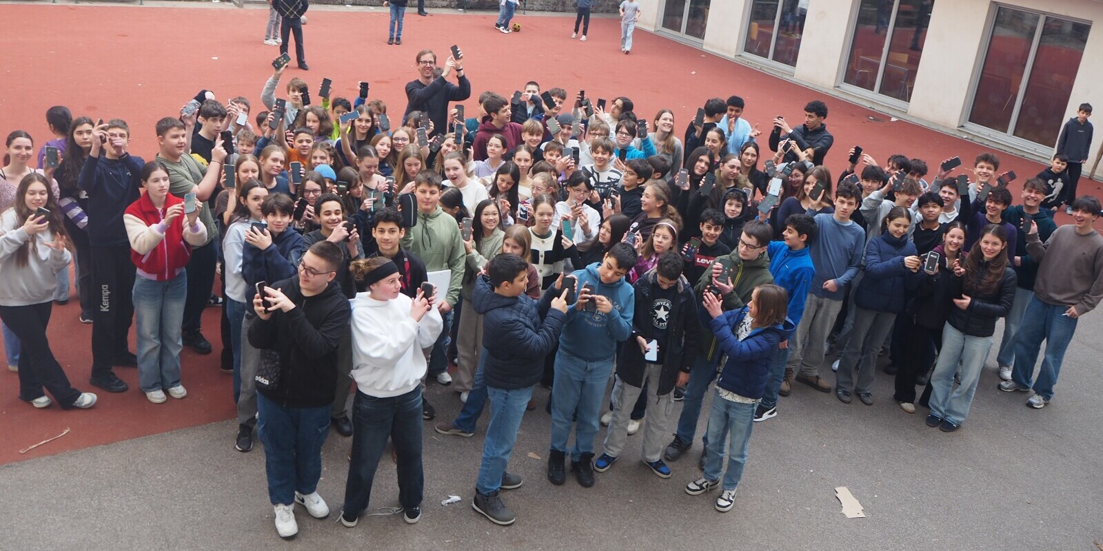 Mit einem gemeinsamen Treffen im Schulhof fiel der offizielle Startschuss für das große Handyexperiment auch bei uns am Rainergymnasium. Mehr