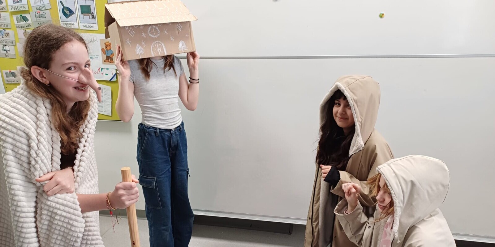 Vergangene Woche präsentierte die 1A Standbilder zu verschiedenen Märchen-Klassikern. Mit viel Kreativität und Freude stellten sie Rotkäppchen, Rapunzel und Co. nach. Anschließend präsentierten sie die Märchenklassiker ihren Mitschüler:innen. Mehr