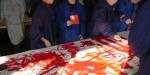 Angeregt von den Bildern Prachenskys, mit kraftvollen Pinselstrichen und hauptsächlich in Rot, wurden mit Temperafarbe die zwei Gemeinschaftsbilder gestaltet.
