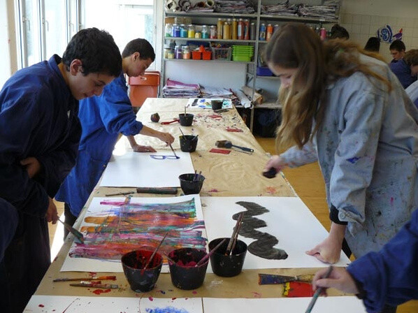 Beim anschließenden Workshop im Atelier konnten Anregungen malerisch umgesetzt werden.