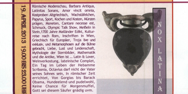 Am Freitag, 19. April 2013 ist es soweit: Die lange Nacht des Lateins und der Antike findet zum 3. Mal statt.