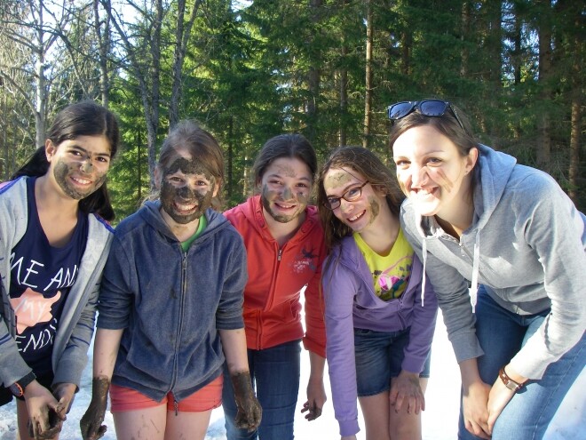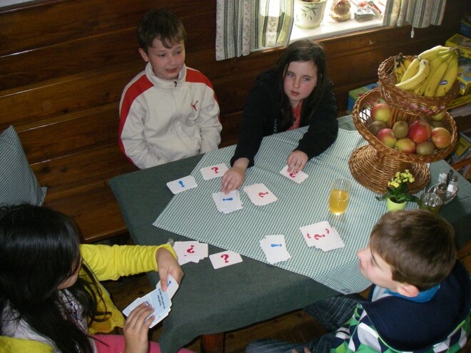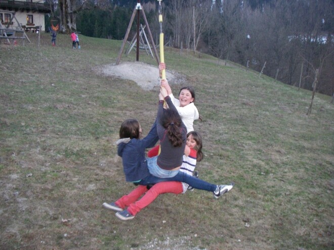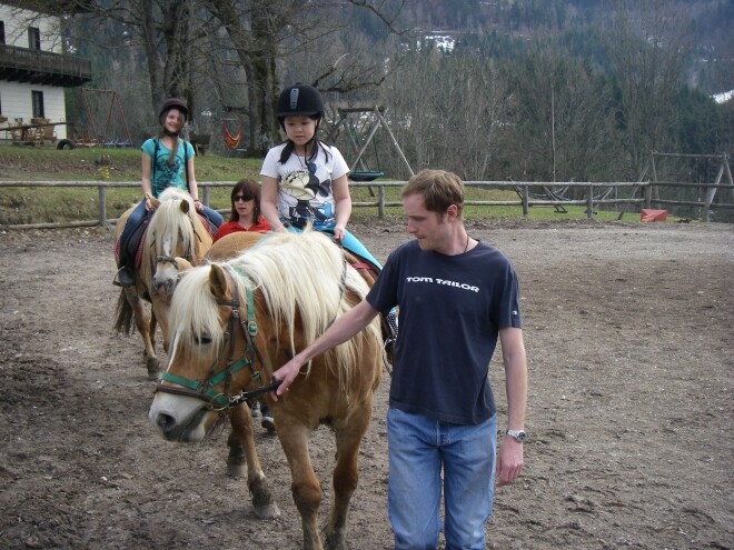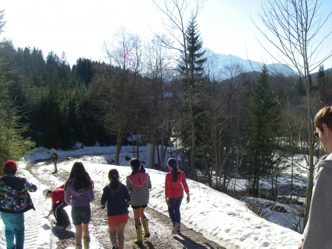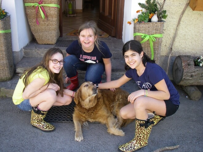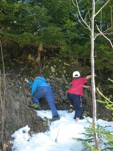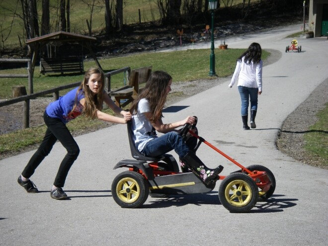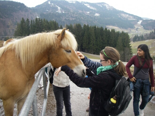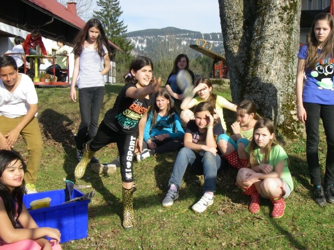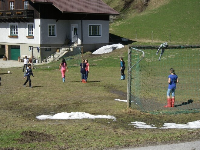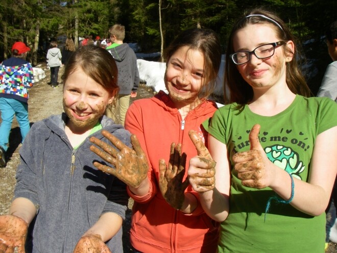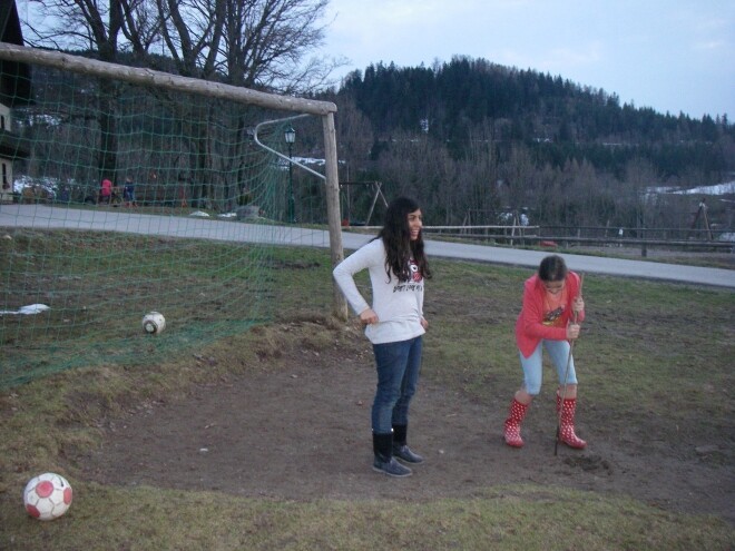 Montag, 15. 4. Heute sind wir in der Pension Bodenhof angekommen. Wir haben dann gegessen, es war sehr lecker. Am Nachmittag durften wir frei spielen und die Tiere des Bauernhofs kennenlernen: Pferde, Hasen, Kühe, Katze Franzl und Hund Daisy. Später sind wir in den Wald gegangen, um aus den gefundenen Sachen im Wald ein Mandala zu legen. Ein paar Kinder haben sich das Gesicht mit Schlamm beschmiert (die Fr. Prof. Mayr auch). Dann durften wir noch beim Hof spielen. Danach gab es ein sehr gutes Abendessen. Und am Schluss sind wir in unseren gemütlichen Betten eingeschlafen. Der Tag war sehr schön! (Amelie, Selina, Dilara, Weronika)
