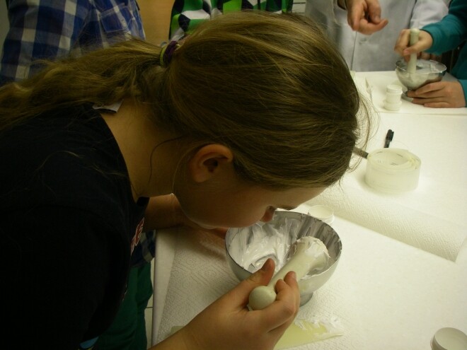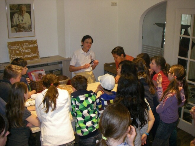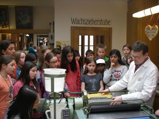 Dienstag, 16. 4. Wir waren in Mariazell. Dort wurden wir in zwei Gruppen eingeteilt. Die eine Gruppe ist in die Basilika gegangen, die andere in eine Apotheke. Dort hat uns ein Apotheker über die frühere Apotheke erzählt und alte Geräte gezeigt. Danach haben wir Tee abgefüllt und eine Salbe gemacht. Dann konnten wir kurz einkaufen gehen und danach gingen wir in ein Gasthaus essen. Am Nachmittag waren wir noch in der Lebkuchenbäckerei Pirker und haben selbst Lebkuchenherzen verziert. Danach waren wir bei einem Wachszieher und haben Kerzen gedreht. So konnten wir viele selbst gemachte und auch einige gekaufte Souvenirs mit nach Hause nehmen. Das war unser Ausflug nach Mariazell! (Marion und Vanessa)