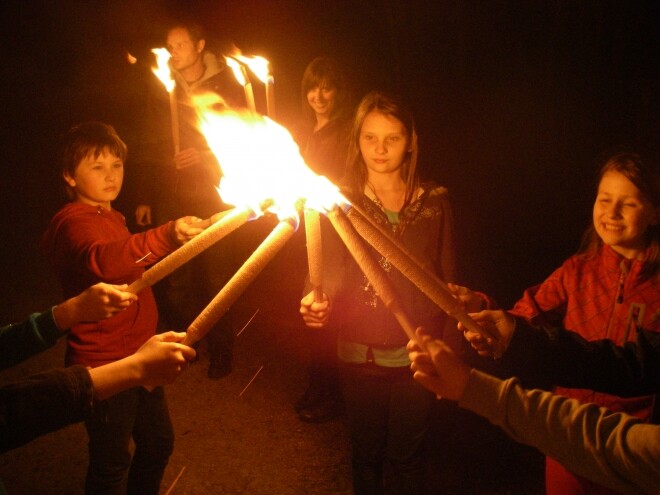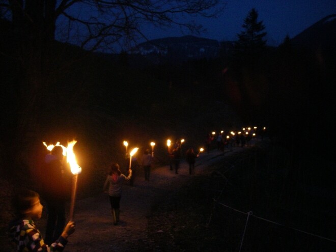 Mittwoch, 17. 4. Heute wanderten wir zum Schaglhof. Dort gab es Hasen, Pferde und Katzen. Danach waren wir bei einem Staudamm. Dort haben wir Flussmuscheln gesammelt, diese waren sehr schön. Wir haben viele Blumen gesehen, z. B. Schneerosen und Schneeglöckchen. Im Wald und am Staudamm sind wir durch den Schlamm gestapft und mit dreckigen Schuhen wieder herausgekommen. Kurz vor dem Abendessen sind noch einige Kinder in ein Bauernmuseum gegangen. Dort gab es viele sehr alte Werkzeuge. Am Abend sind wir mit unseren Fackeln durch den Wald gegangen und haben ein Lagerfeuer daraus gemacht. Uns hat der Tag sehr gut gefallen! (Steffi und Carina)