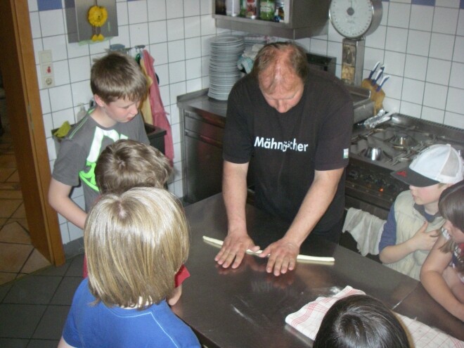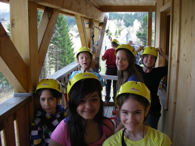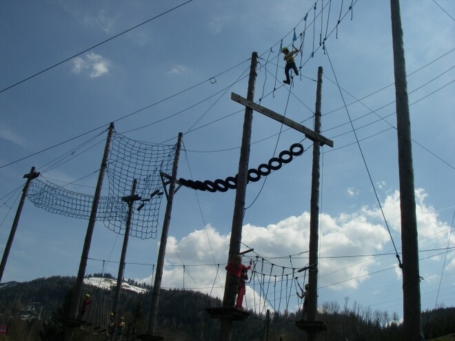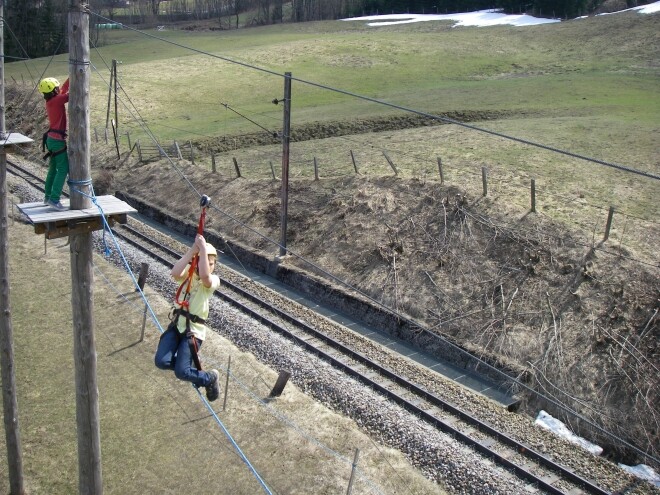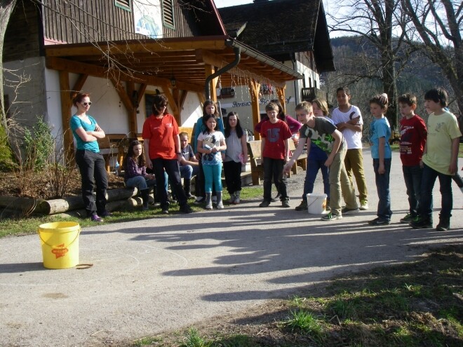Donnerstag, 18. 4. Nach dem Frühstück wanderten wir zu einer Standseilbahn. Damit fuhren wir zu einem EVN-Werk. Dort kommen 6.000 Liter Wasser pro Sekunde aus einer Schleuse. Danach schauten wir uns die großen Turbinen an. Bald darauf erklärte uns ein Mann einiges über die Imkerei und die Bienen. Später sind wir mit der langsamen Seilbahn wieder bergauf gefahren. Nach dem Mittagessen sind die meisten von uns in einen Klettergarten gegangen. Danach durften wir auf dem Bodenhof noch auf den Pferden reiten und den Kuhstall ausmisten. Am Ende des Nachmittags haben wir noch einen Wettbewerb (Bauernhofolympiade) gemacht mit Hufeisen- und Gummistiefelwerfen. Wie jeden Tag in dieser Woche war es wunderschön sonnig und warm. Als es finster war, haben wir ein Lagerfeuer gemacht, in dem wir Würstel, Brot und Marshmallows gegrillt haben. (Florian und Dominik)