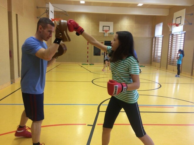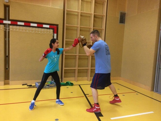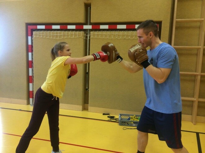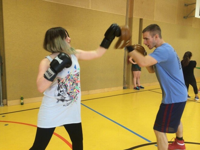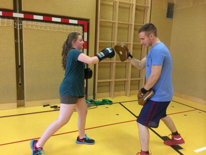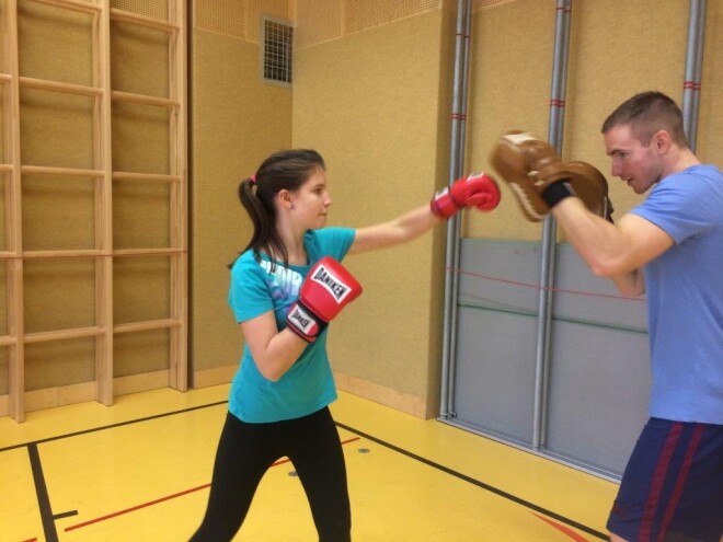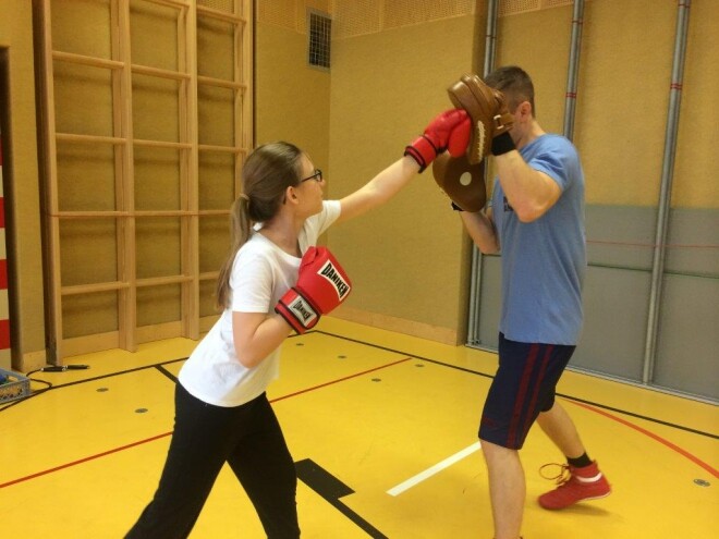 Die Schülerinnen der 4C und 4D erhielten im Rahmen des Unterrichts aus BSP am Dienstag, den 11.11.2014, ein Boxtraining von zwei Trainern der Vienna Backyard Boxschule.