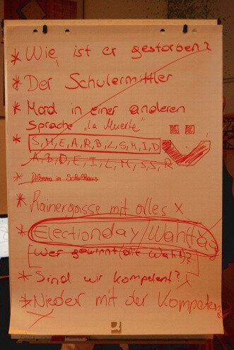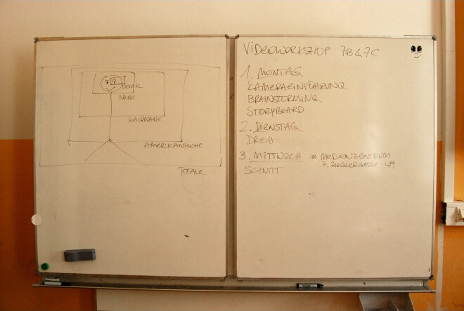 Von 22. bis 29. Juni 2015 fand das schon mit Spannung erwartete Filmprojekt der 7. Klassen statt. Betreut und ausgestattet vom Medienzentrum WienXtra konnten die Schüler/innen in Teams ihre eigene Kurzfilme produzieren und dabei beweisen, was sie im Fach Medienwelten alles über Drehbuch, Storyboard, Licht- und Sounddesign u.v.m. gelernt hatten.
