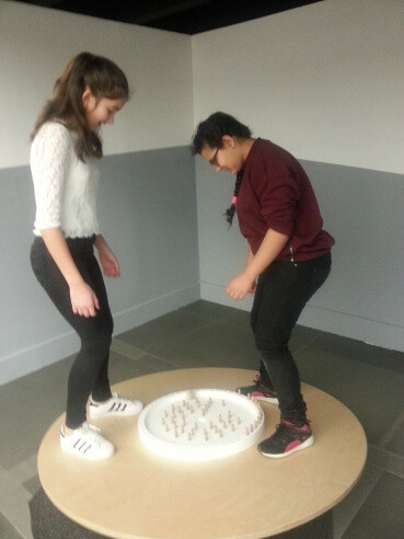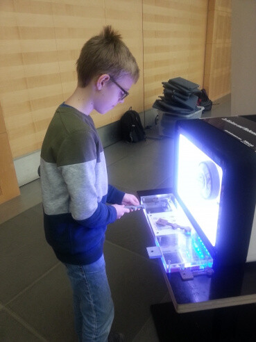 Ich beschreibe die Station „Takt“. Bei dieser Station gab es zwei Pads. Wenn man sie berührte, machte der Lautsprecher, der unter dem Tisch befestigt war, ein Geräusch. Die Pads waren nämlich mit einem Kabel mit dem Lautsprecher verbunden. Auf der Oberfläche des Tisches war ein großer Flat-Screen. Man konnte zwischen drei Schwierigkeiten auswählen. Bei der ersten Stufe musste man in großen Zeitabständen die Pads berühren, bei der dritten Stufe musste man schon sehr schnell auf die Pads drücken. Es waren zwei Linien in der Mitte des Bildschirms und in der Mitte der beiden Linien war ein Punkt. Der zeigte an, ob man das Pad zur richtigen Zeit gedrückt hatte. Wenn ja, wurde der Punkt schwarz, das bedeutete, man hatte zur richtigen Zeit gedrückt. Es gab auch einen Spielmodus, bei dem man zuerst sehr langsam, dann mittel und am Ende sehr schnell drücken musste. Ich fand den Spielmodus am schwierigsten. Mir hat es dort sehr gut gefallen. Ich würde mit meiner Familie gerne noch einmal hingehen.