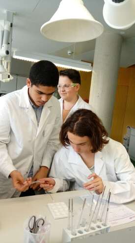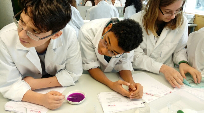 Zu Beginn des Praktikums wiederholten wir die Laborregeln, die man in jedem Labor beachten muss. Daraufhin bekamen wir Kärtchen mit verschiedenen Stoffen, wie z. B. Kaffee, Badeschaum, DNA usw., die wir richtig zuordnen sollten.