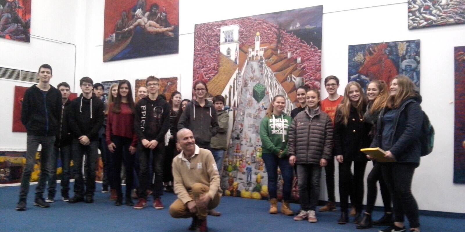 Die Spanischgruppe der 6BR- und 6CL-Klassen besuchte die Ausstellung mit dem Titel „Die Digitale Einsamkeit: Happiness 4.0 (Alexa, mir ist kalt…)“ im Lateinamerika-Institut. Der kolumbianische Künstler Antonio Zapata, der seit 1981 in Wien lebt, führte eine Stunde lang auf Spanisch durch die Ausstellung, erzählte aus seinem Leben und erklärte die zahlreichen Referenzen in seinem Werk.