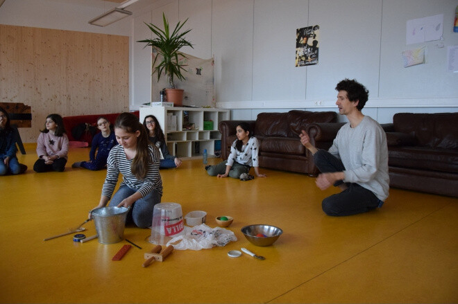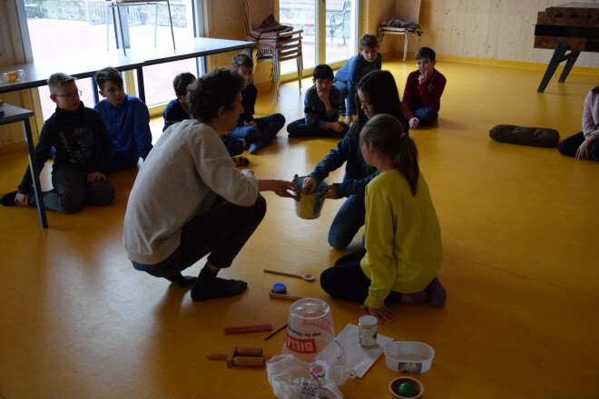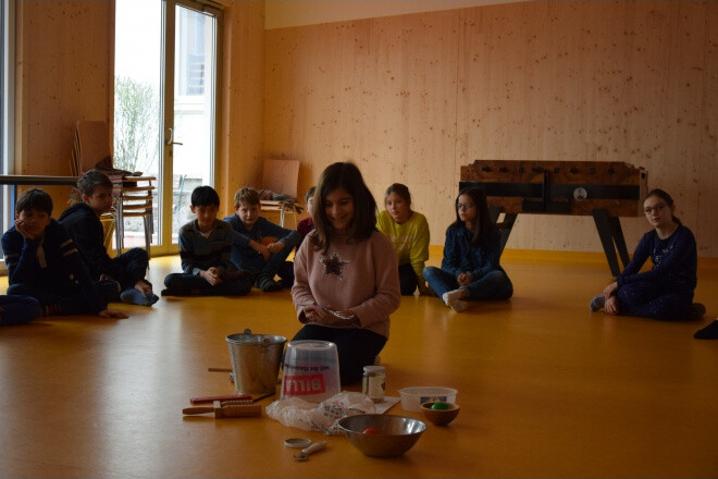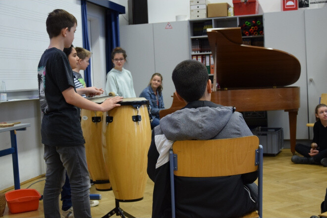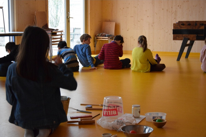 Welche Klänge kann man aus einem Blatt Papier herausholen? Und welche kann man mit einem Plastiksieb erzeugen? Was ist überhaupt Klang und wo beginnt Musik? Frei nach Matthias Schwabe und Lilli Friedemann, deutschen Musikpädagogen, haben wir spielerisch nach Klängen gesucht, Gehör und Aufmerksamkeit geschult, eine Landschaft vertont und als Höhepunkt zwei kurze Filmszenen mit mehr oder weniger passenden Tönen versehen.