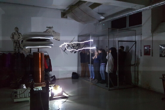 Die Schüler/innen der 4B durften im Keller des Gymnasiums Rosasgasse 2 Meter lange Blitze erleben!