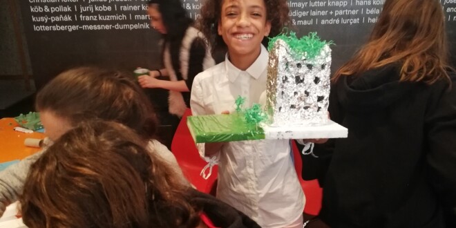 Die Schülerinnen hatten im Architekturzentrum die Gelegenheit, ihre Ideen von einer Stadt der Zukunft in ihren Modellen darzustellen.