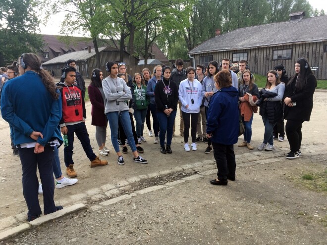 Am nächsten Tag nahmen wir mit über 10.000 Menschen aus aller Welt am „March of the Living“ teil, der uns vom Stammlager in das größte Konzentrations- und Vernichtungslager Auschwitz-Birkenau führte. Trotz der großen Menschenmenge schien das Gelände nahezu leer zu sein, ein Lager von unfassbarer Dimension. Nach einer Führung von Professorin Rothländer folgte ein Zeitzeugengespräch mit Viktor Klein, den wir am nächsten Tag bei einem – nach den trüben Erlebnissen der letzten Tage – stimmungshebenden Konzert in einer Krakauer Synagoge wiedertrafen.