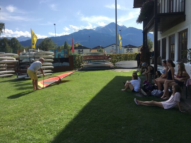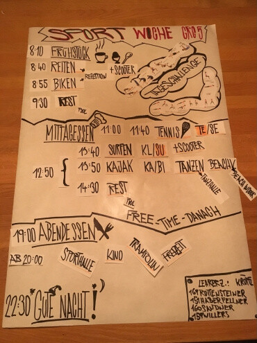 Nachdem man sich in der großen und sehr gut ausgestatteten Hotelanlage mit Kino, Funcourt, Bowlingbahn, mehreren Beachvolleyballplätzen u.v.m. zurechtgefunden hatte, haben am Montag die Kurse begonnen - für manche schon am Vormittag, für andere erst am Nachmittag. Für die Schülerinnen und Schüler, deren Kurse erst am Nachmittag begannen, gab es am Vormittag ein Alternativprogramm: An diesem Tag konnte man Beachvolleyball oder Ultimate Frisbee spielen oder den hauseigenen Motorikpark besuchen. Am Abend konnte man als absolutes Highlight eine Schaumparty, die vom Jugendhotel veranstaltet wurde, besuchen. Am Dienstag gab es ähnlich wie am Montag neben den Kursen ein Alternativprogramm, bestehend aus unterschiedlichen Sportarten. Nach dem Abendessen haben die ersten Turniere begonnen. Am Mittwoch gab es statt der Ausführung von verschiedenen Sportarten einen Orientierungslauf als Alternative zu den Kursen. Der Orientierungslauf, welcher sehr interessant gestaltet war, lief so ab, dass man mithilfe einer Karte in Gruppen durch den Ort lief und QR-Codes scannte. Zum Abendessen gab es als kleines „Zuckerl“ unserer Herberge ein sehr bekömmliches Grillbuffet. Zum Abschluss des Tages wurden die Turniere weitergeführt, wobei besonders das Beachvolleyball-Turnier einen großen Zulauf erhalten hat. Am letzten Tag unserer Sportwoche stand eine Wanderung mit insgesamt 600 Höhenmetern am Programm. Voll verschwitzt und sehr müde kamen wir nach ca. 3,5 km bergauf wieder zum Mittagessen beim Quartier an. Nach der Siegerehrung unserer Sportwettkämpfe rundete ein cooler Abschlusstag diese wunderschöne und tolle Sportwoche ab!