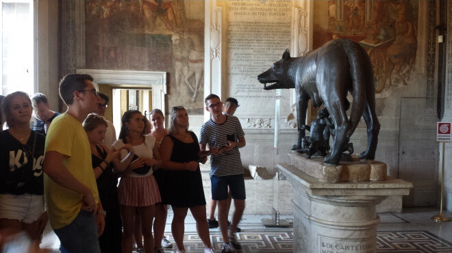Zu Beginn des neuen Schuljahres machten sich die Lateinschülerinnen und -schüler der 8. Klassen gemeinsam mit den Professoren Gruböck und Scheiner nach Rom auf, um in die Geschichte und Kultur der „ewigen Stadt“ einzutauchen. Auf dem Programm standen intensive Besichtigungen der vatikanischen und kapitolinischen Museen, des Petersdomes samt seiner Unterkirche mit dem Petrusgrab und vieler anderer Kirchen, des Forums und anderer Stätten der Antike, wie zum Beispiel die noch recht gut erhaltenen Anlagen der Hafenstadt Ostia Antica. Nach einer anstrengenden, aber auch sehr lehrreichen und interessanten Woche, bei der auch leibliche Genüsse nicht zu kurz kamen (wir wurden von den Schwestern im Kloster gut verpflegt und fielen auch oft und gerne in die verschiedenen Eissalons ein) kehrten alle wieder wohlbehalten nach Wien zurück.