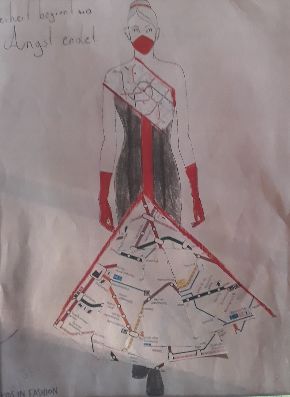 „Emine (11) hat uns für Kids in Fashion 2020 ein Öffi-Kleid geschickt! Mit so einer schönen Botschaft dahinter! Die Jury war begeistert und so haben Modeschüler_innen in der Sommerwerkstatt das Kleid umgesetzt. Die Wiener Linien haben uns Netzplan-Badetücher zur Verfügung gestellt, die die Modeschüler_innen zu einem traumhaften Kleid vernäht haben! Danke Emine für deinen großartigen Entwurf!!“ (Kids in Fashion)