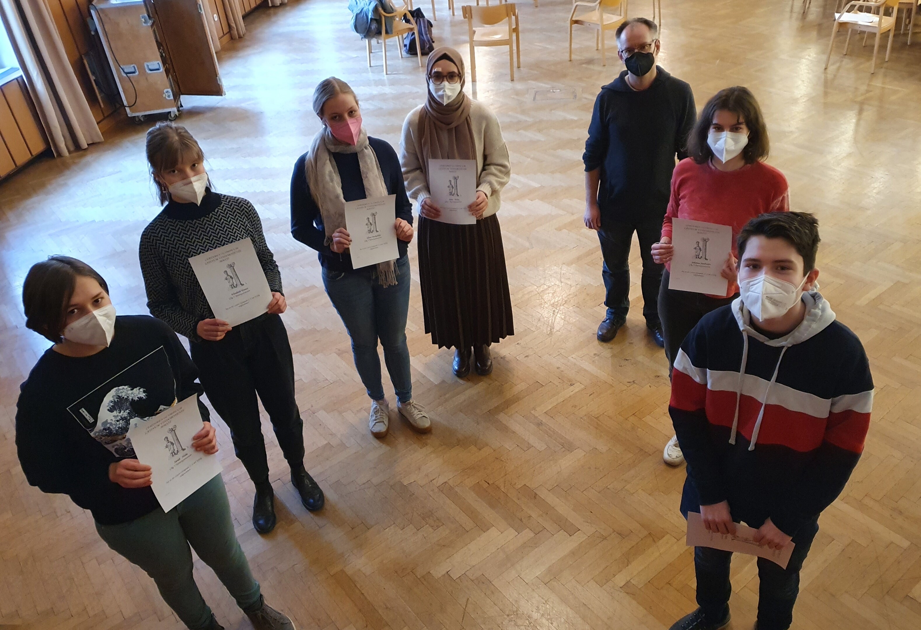 Ich danke auch sehr denjenigen Schülerinnen und Schülern, die beim schulinternen Bewerb hervorragende Leistungen erbracht haben, sowie unserer Frau Direktorin, die es uns ermöglicht hat, auch unter den aktuellen Bedingungen eine schöne Siegerehrung in ihrem Beisein (in zwei Gruppen) zu veranstalten.