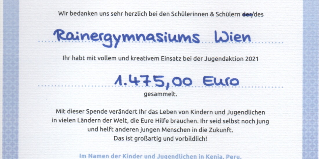 1.475 Euro konnten wir durch Schokoladen- und Chipsverkauf einnehmen und spenden. Im Namen der Kinder aus Kenia, Peru, Uganda und Pakistan dankt uns Pater Karl Wallner, Nationaldirektor von Missio Österreich und schickt uns Gottes Segen.