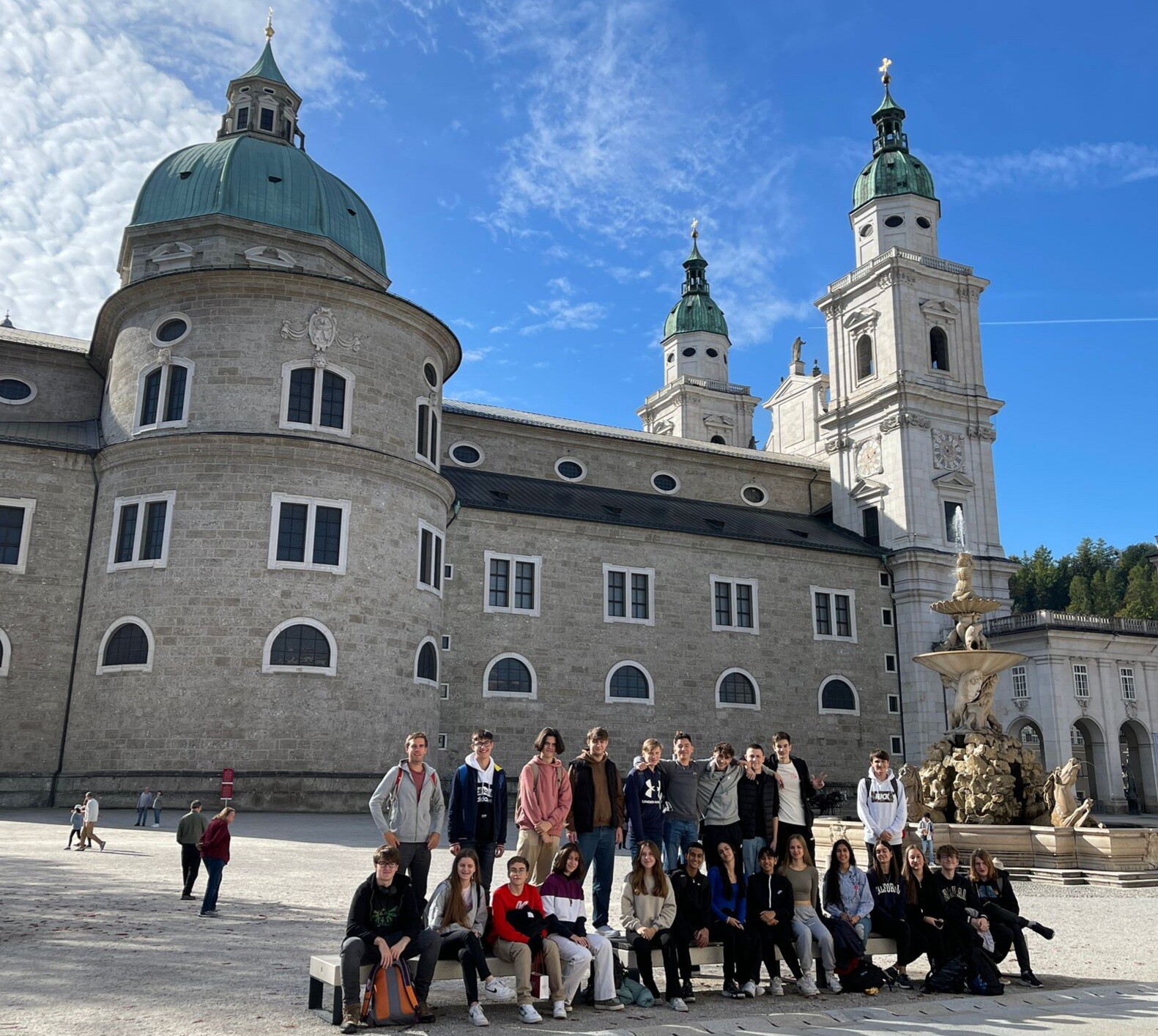 Am 10. Oktober 2022 ging es für die 6C mit dem Zug von Wien nach Salzburg. Die Mozartstadt zeigte sich an diesem goldenen Herbsttag von ihrer sonnigsten und strahlendsten Seite. Die Berge und Hügel umrahmten mit ihrem bunten Farbenkleid die barocke Altstadt, in der wir staunend eine Sehenswürdigkeit nach der anderen erkundeten. Besonders die geschäftige Getreidegasse, der weitläufige Residenzplatz mit seinem Glockenspiel und Brunnen, sowie der prächtige Salzburger Dom, in dem wir einem Orgelkonzert beiwohnten, beeindruckten uns sehr. Der wundervollste Panoramablick tat sich uns allerdings von den steilen Abhängen des im Schatten der Festung Hohensalzburg gelegenen Mönchsbergs auf, der uns zu verstehen gab, warum man Salzburg auch gerne als „Rom des Nordens“ bezeichnet. Um viele schöne Erinnerungen und Erlebnisse reicher sowie natürlich mit der einen oder anderen originalen Mozartkugel im Gepäck brachte uns der Zug sicher nach Wien zurück.