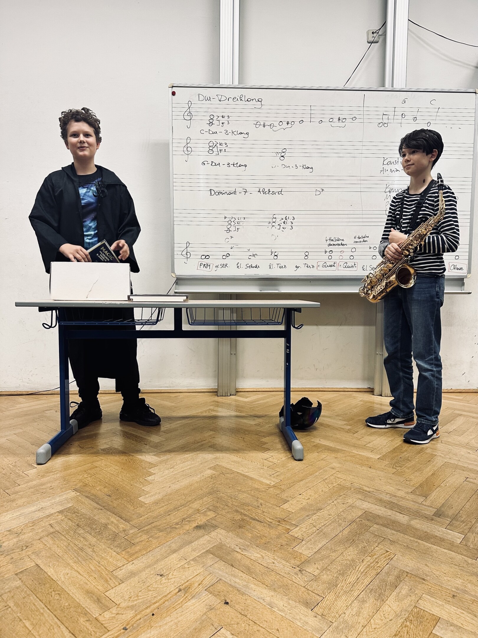 Anfang Oktober fand in der 3D, 3E und 3F eine Talenteshow statt, bei der Schüler:innen ihre kreativen Fähigkeiten präsentieren konnten. Dabei gab es durchaus amüsante und mannigfaltige Beiträge, unter anderem Stand-up-Comedy, Gesangs- und Tanzeinlagen und Performances von Instrumentalist:innen. Gewonnen haben in der 3D Henry und Konstantin mit ihrer Zaubershow, die mit dem Altsaxophon musikalisch begleitet wurde, aus der 3E Lisa mit ihrer Sologesangseinlage von „My Favorite Things“ aus dem Musical „Sound Of Music“ (Richard Rodgers und Oscar Hammerstein II), und aus der 3F Theo, Vincent und Julian mit ihrer Performance am Schlagzeug, Klavier und der Gitarre von Queens „We Will Rock You“.