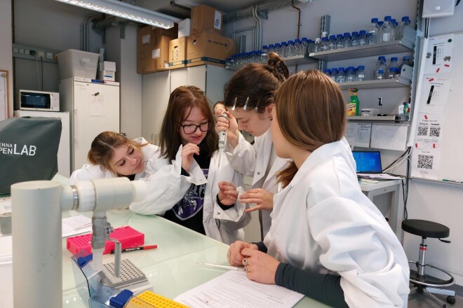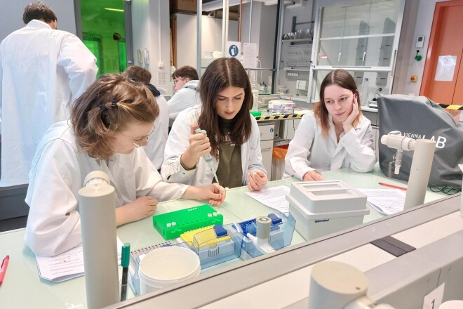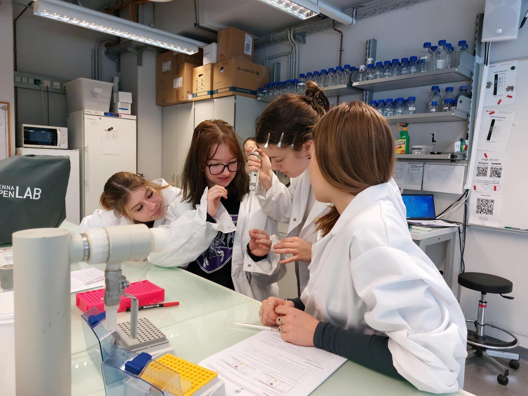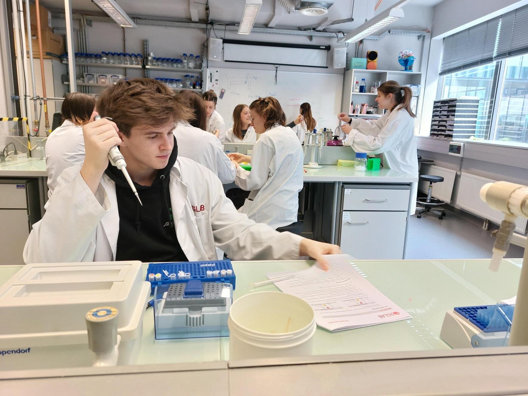 Am 21. Februar besuchten wir, die 8AF, die Labore des Vienna Open Labs, wo wir forschten und experimentierten. In dem Workshop mit dem Titel "Vom Gähnen und Genen" fanden wir mittels einer PCR-Analyse heraus, ob wir laut unserer DNA-Anlage Lang- oder Kurzschläfer:innen sind. Durch Isolierung der eigenen DNA und durch eine folgende PCR, also eine Vervielfältigung unseres Erbmaterials, war es uns möglich, eine kleine Region des sogenannten CLOCK-Gens zu bestimmen. Anhand der Gelelektrophorese machten wir die Genabschnitte sichtbar und kamen so zu einem Ergebnis. Wir danken Magdalena und Frau Professor Matulik für diesen spannenden Vormittag. So, nach diesem Worshop verblieben wir in Gähnen und begeben und schnellstmöglich in die REM-Phase.
