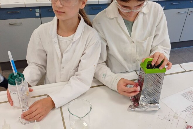 Warum sehen wir Farben? Sehen Hunde und Katzen die Welt genauso wie wir? Wie können wir Farbstoffe aus verschiedenen Gemüsesorten gewinnen? Wie färbt man eigentlich Glas? Und woher kommt überhaupt der Ausdruck „Blau machen“? Diesen Fragen und vielen mehr versuchten wir in dem rund dreistündigen Programm näher zu kommen. Das Highlight war mit Sicherheit das Überraschungsexperiment der Professoren. Ein großes Danke an das TGM!