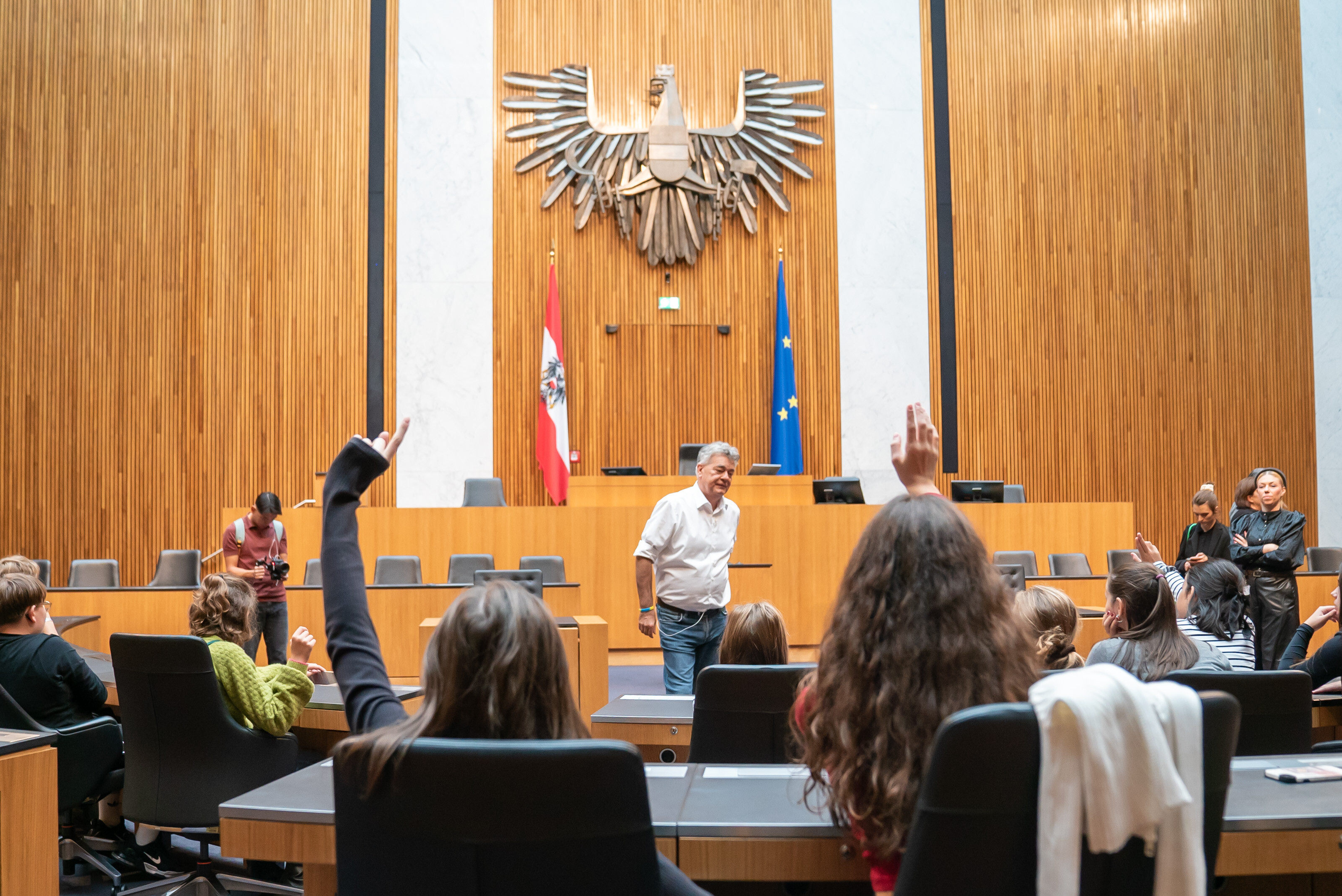 Das neue Schuljahr startete für die 2A mit einer Einladung ins Parlament und einem Zusammentreffen mit Vizekanzler Werner Kogler. Doch wie kam es dazu?