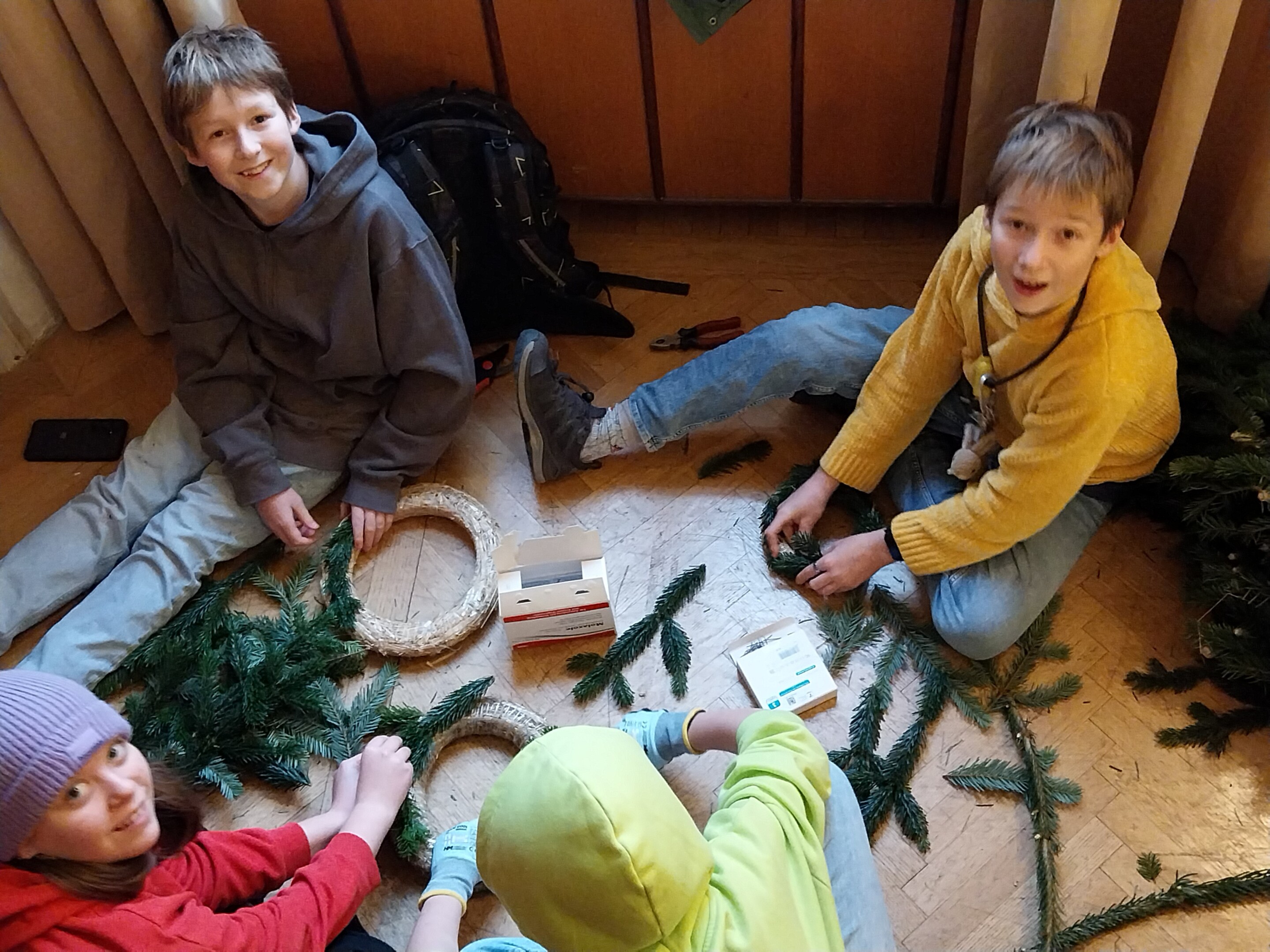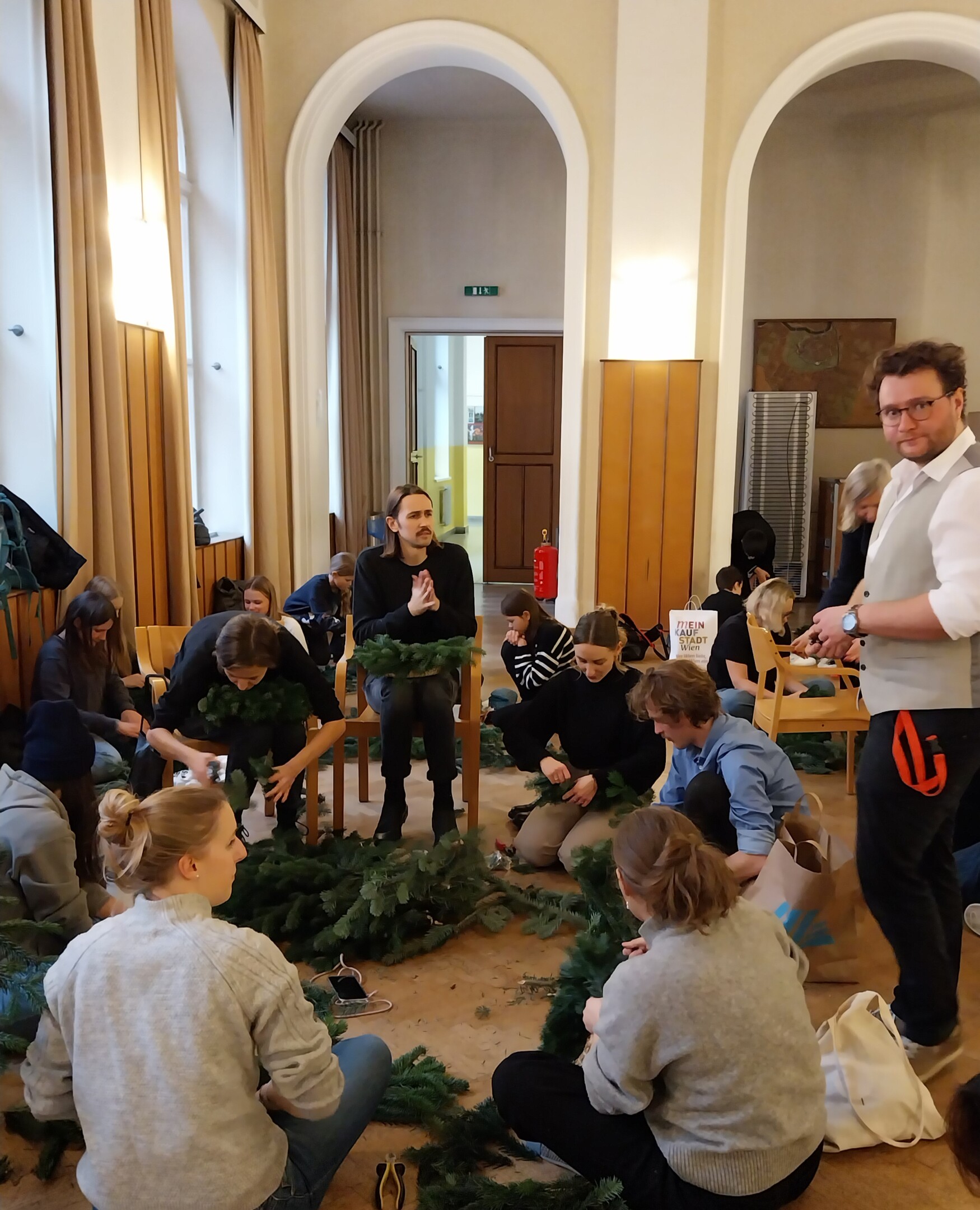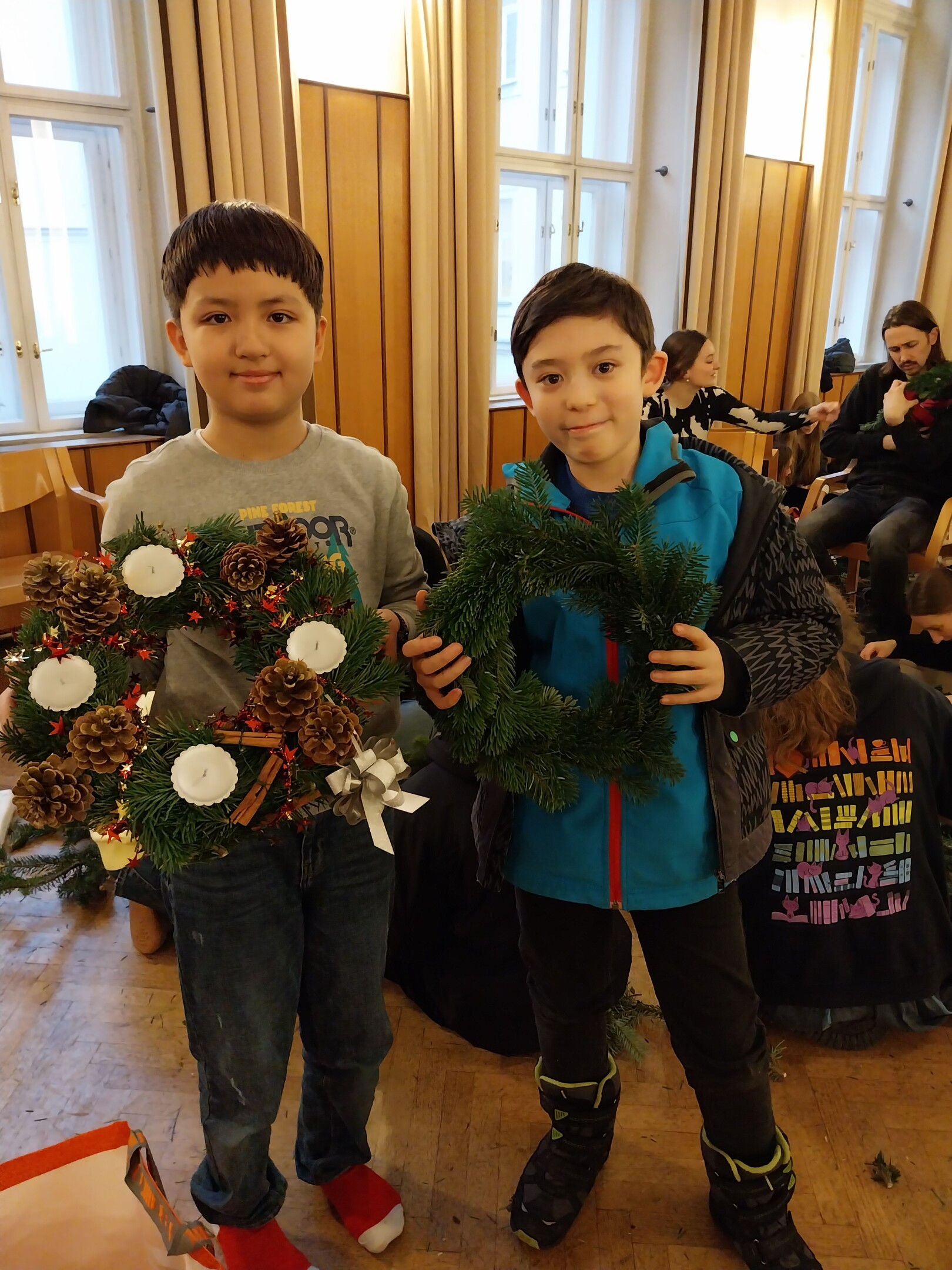 Schüler und Schülerinnen, aber auch eine ganze Schar Lehrer und Lehrerinnen, Freunde, Eltern, sowie jüngere und ältere Geschwister - am Freitag Nachmittag war in unserem Festsaal was los! Um die 100 Adventkränze wurden für den privaten Gebrauch und auch für die Klassenräume angefertigt. Dazu der Duft der Tannenzweige und gemütliche Stimmung: So kann der Advent gut beginnen.