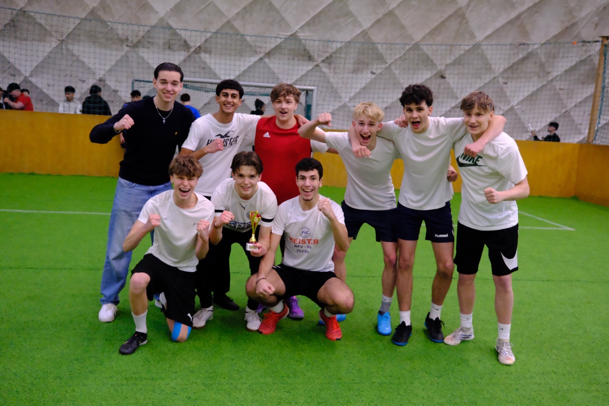 Unsere Schulmannschaft hat beim Turnier mit acht teilnehmenden Schulen einen beeindruckenden Sieg errungen! Von insgesamt 16 Teams sicherten wir uns den 1. Platz - und das mit einer herausragenden Leistung. Im Halbfinale dominierten wir mit einem klaren 4:0-Sieg, bevor wir uns im spannenden Finale im Elfmeterschießen durchsetzten.