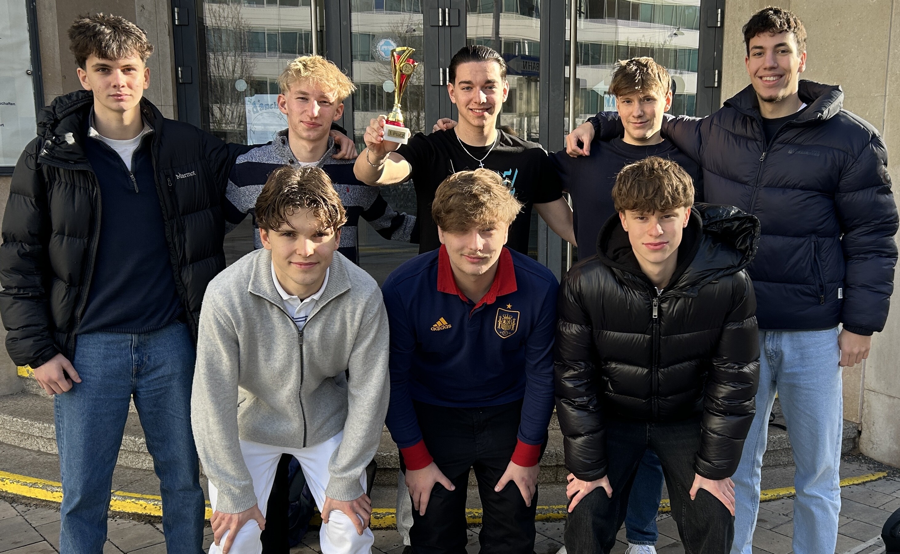 Ein großes Lob an unser Team: Anton Malinovski, Dorian Cvetkovic, Fabian Wind, Georg Malinovski, Julian Deutschmann, Leon Scheed, Lorenz Hansel, Michael Gerguis und Nemanja Jadzic. Ihr habt unsere Schule stolz gemacht!