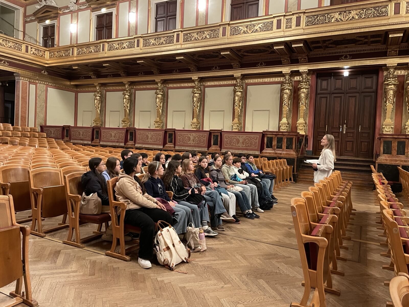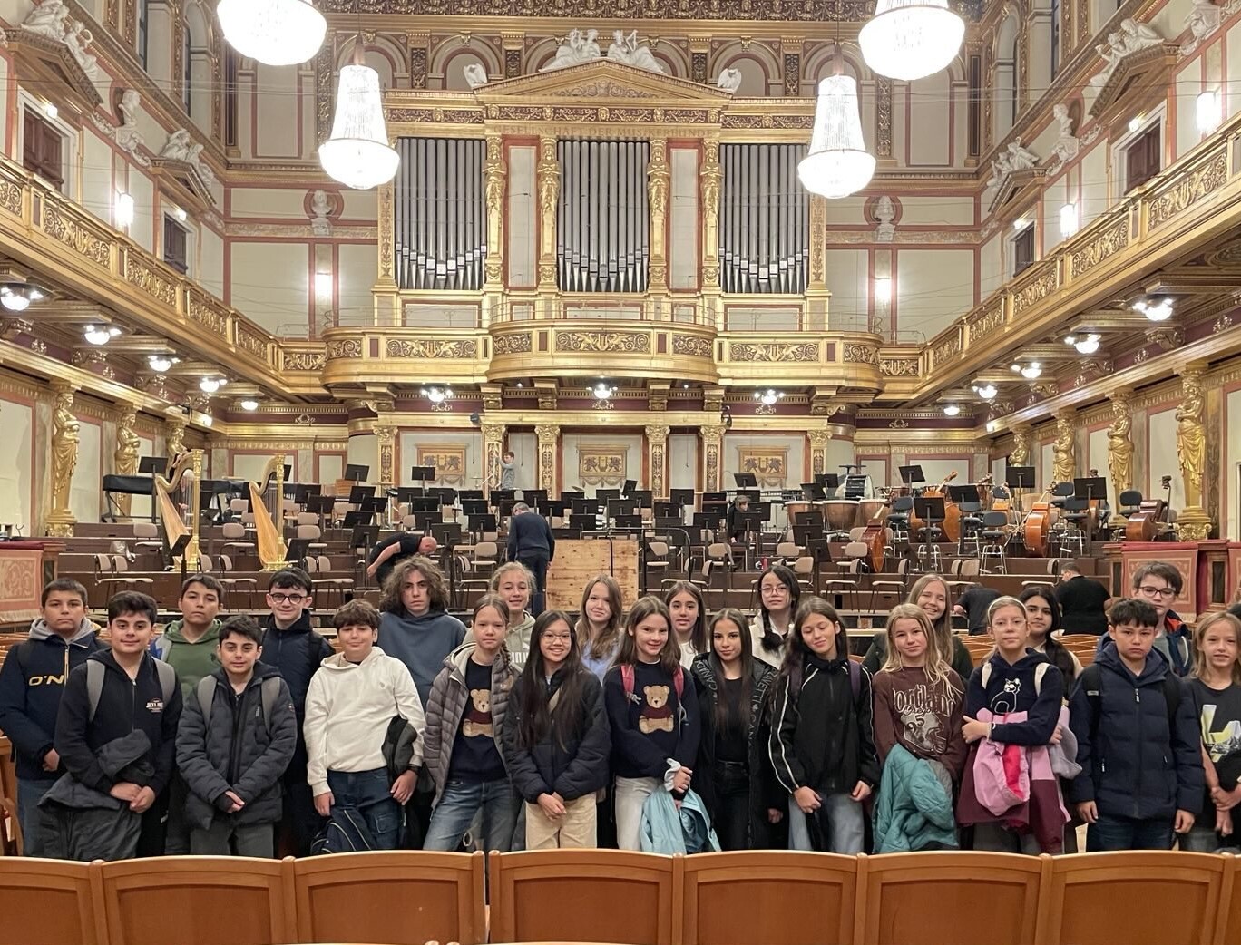 Am Freitag, dem 3. Oktober, besuchten wir (die Klasse 3VB) den Musikverein am Karlsplatz, um uns eine Orchesterprobe des Tonkünstler Orchesters Niederösterreich anzuschauen. Als wir ankamen, wurden wir von einer netten Dame empfangen, die uns zunächst von innen den prachtvollen, goldenen Saal zeigte. Sie erzählte uns, dass in diesem Saal alljährlich das weltweit bekannte Neujahrskonzert stattfindet. Diese Aussage hat uns alle sehr beeindruckt. Später hat sie uns die Bestandteile eines Orchesters erklärt. Da wir in unserem Musikunterricht das Thema bereits durchgenommen hatten, konnten wir unser Wissen auffrischen. Kurz bevor die Orchesterprobe begann, hat uns ein Mitglied des Orchesters die Oboe nähergebracht und uns ein Solo vorgespielt. Letztendlich hörten wir uns begeistert die Orchesterprobe an. Später begaben wir uns mit vielen neuen Eindrücken über die Musikwelt wieder zurück in die Schule.