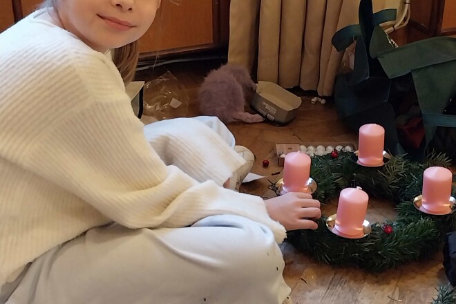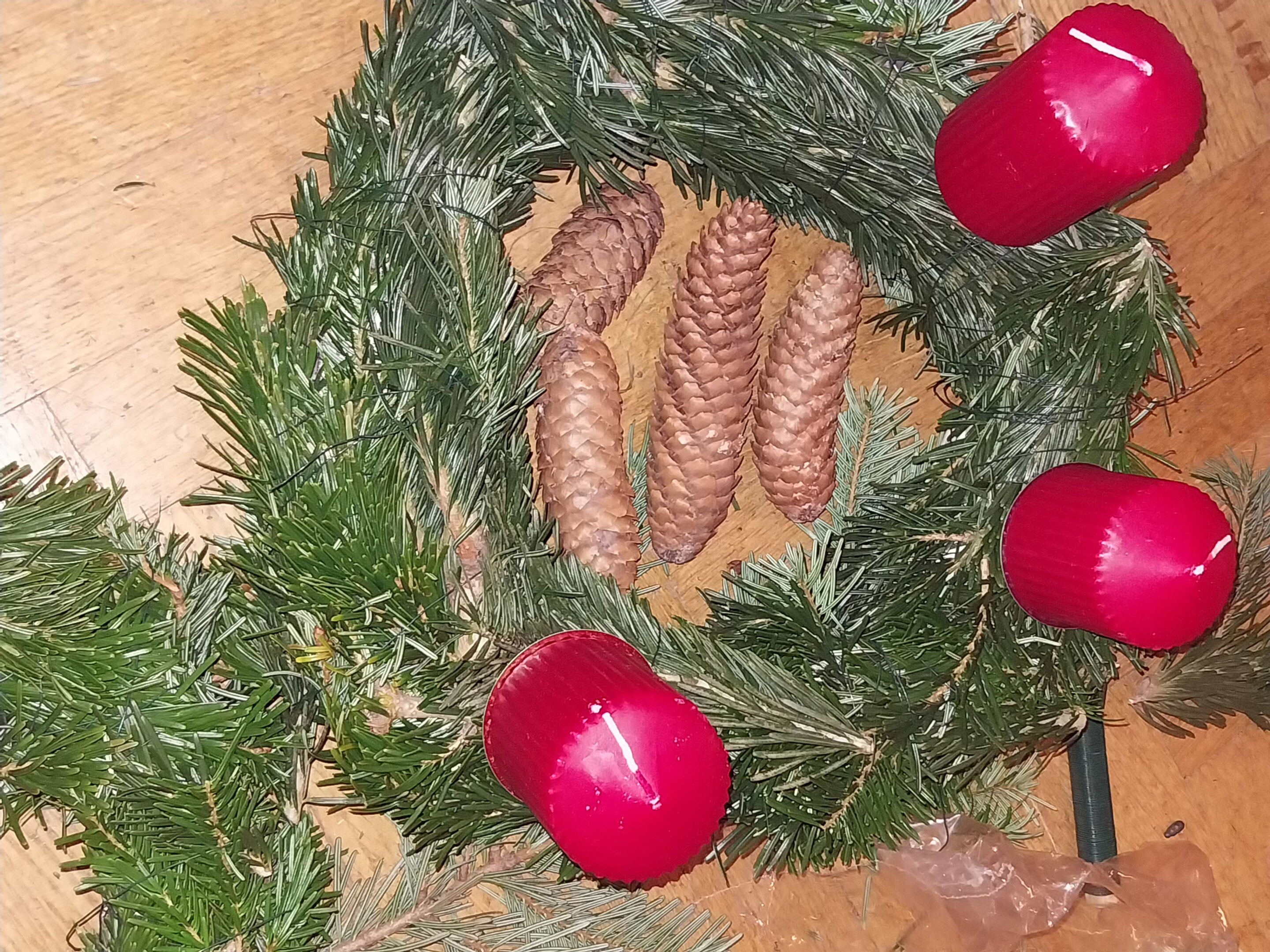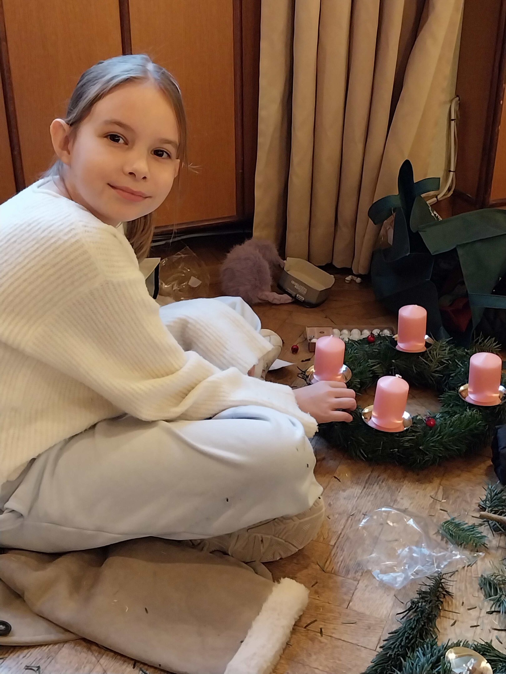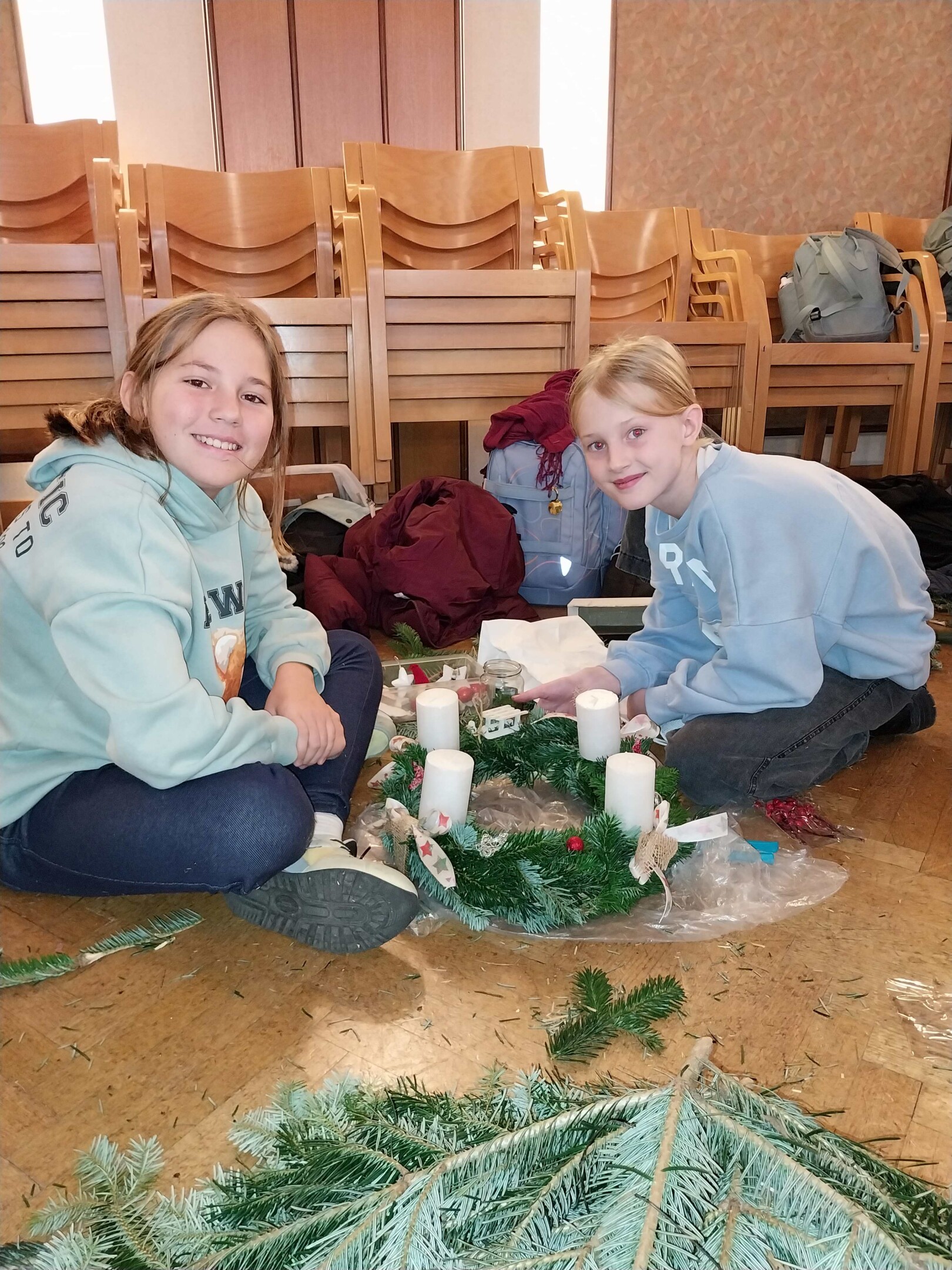 Fast anmutig werden private und Adventkränze für die Klassenräume gebunden, es wird gelacht und einander geholfen. Und geschnüffelt: Der Duft des Tannenreisigs ist unbeschreiblich. Ja, der Advent steht vor der Tür.
