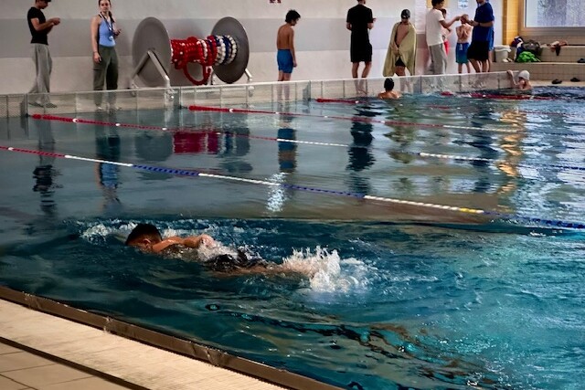 Zu den Schulrekorden: Luiza Svetlychna (1S) schaffte in 17,09 eine neue „Weltordnung“ im Brustschwimmen auf 25m. Sie verbesserte den Altrekord um mehr als eine Sekunde. 13,45 Sekunden von Konstantin Bazilor haben den alten, von ihm selbst gehaltenen Schulrekord aus dem Jahre 2025, zumindest egalisiert. Platon (6C) zeigt im Apnoetauchen und Streckentauchen auf. ABER: Der Streckentauchrekord von 79 Metern von Herrn Bonell aus dem Jahre 2010 ist Hardcore und wird wohl niemals gebrochen werden!!! Dies sind drei Längen auf 25m tauchen und noch vier Meter weiter…
