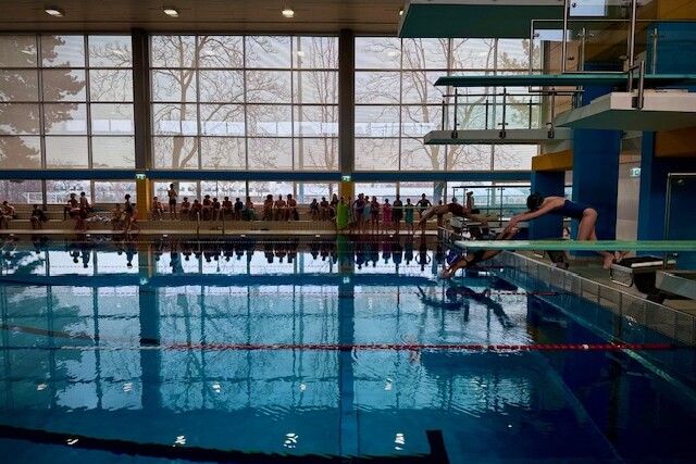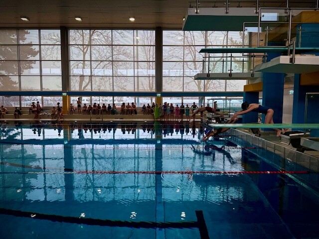 ABER: Welche Rekorde sollen übertroffen werden, wenn Schüler:nnen über Jahre sieben bis zehn mal in der Woche trainieren? Nächstes Jahr wird es für die Teilnehmer:nnen noch schwieriger werden. Vor allem, weil wir Sportklassen haben und die extrem gut in allen Sportarten, also nicht nur im Schwimmen, sind. Das heißt, die Sportklassen heben das agonale Bewegungsniveau. Dies war vor allem beim Wasserballmatch ersichtlich…