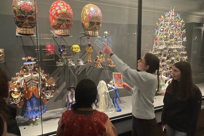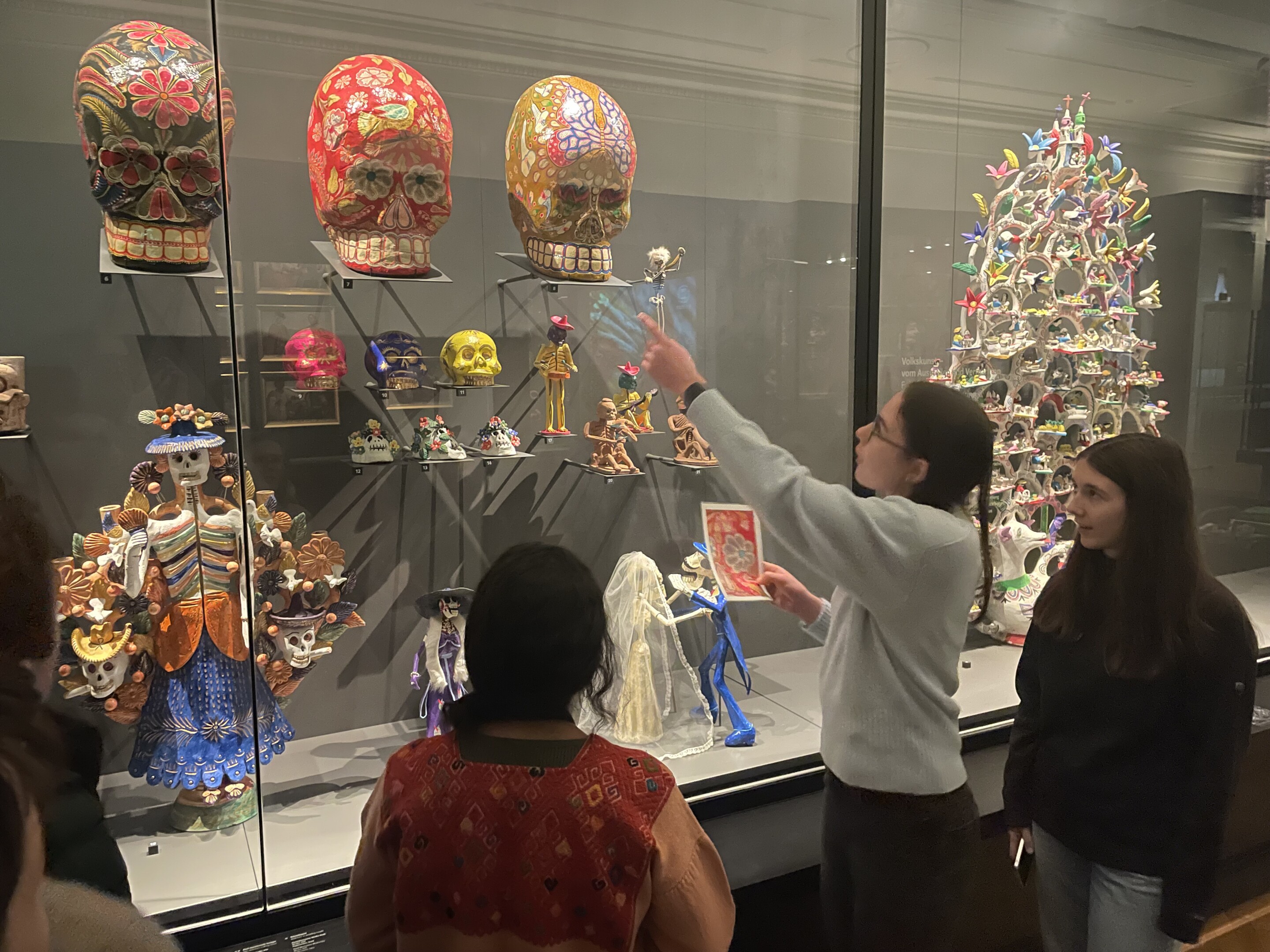 Besonders eindrucksvoll waren die lebendigen Traditionen, die bis heute gepflegt werden. Die Schüler:innen erfuhren mehr zum farbenfrohen Feiertag Día de los Muertos, der das Gedenken an Verstorbene auf eine einzigartige Weise feiert.