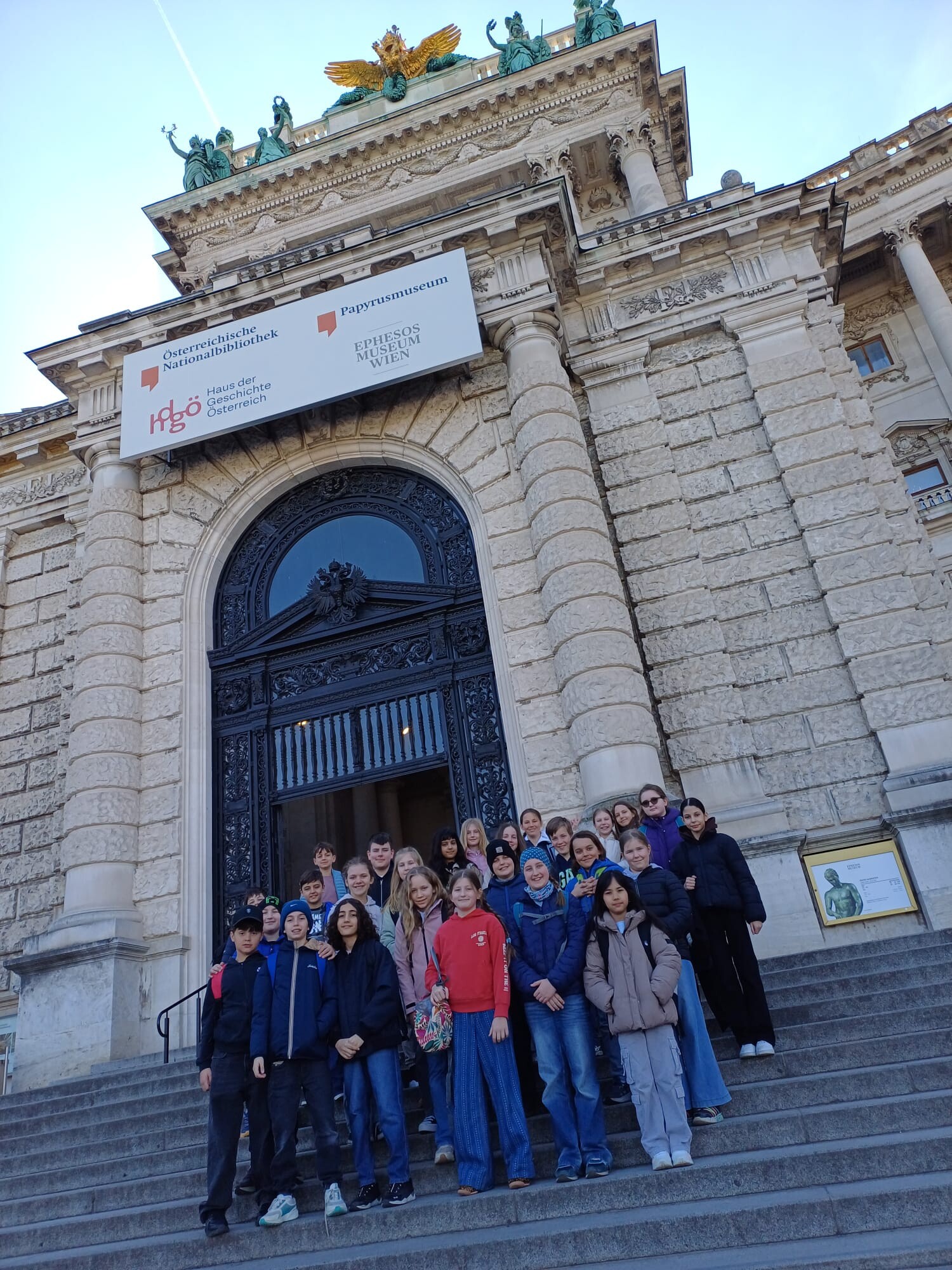 Am 09.04. besuchte die 1A im Rahmen des Deutschunterrichts die Österreichische Nationalbibliothek am Heldenplatz. Wir wurden durch den Bücherspeicher geführt, sahen viele alte Bücher und bestaunten ausgewählte Schätze aus der Sammlung der ÖNB wie beispielsweise das kleinste Buch der Welt, in dem in sieben Sprachen "Ich liebe dich" zu lesen ist.