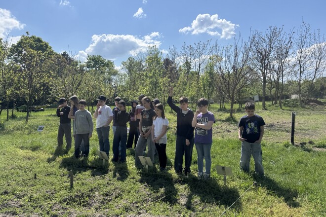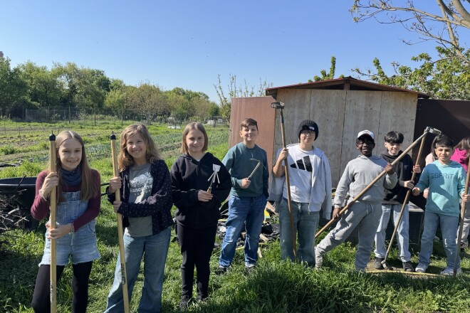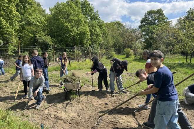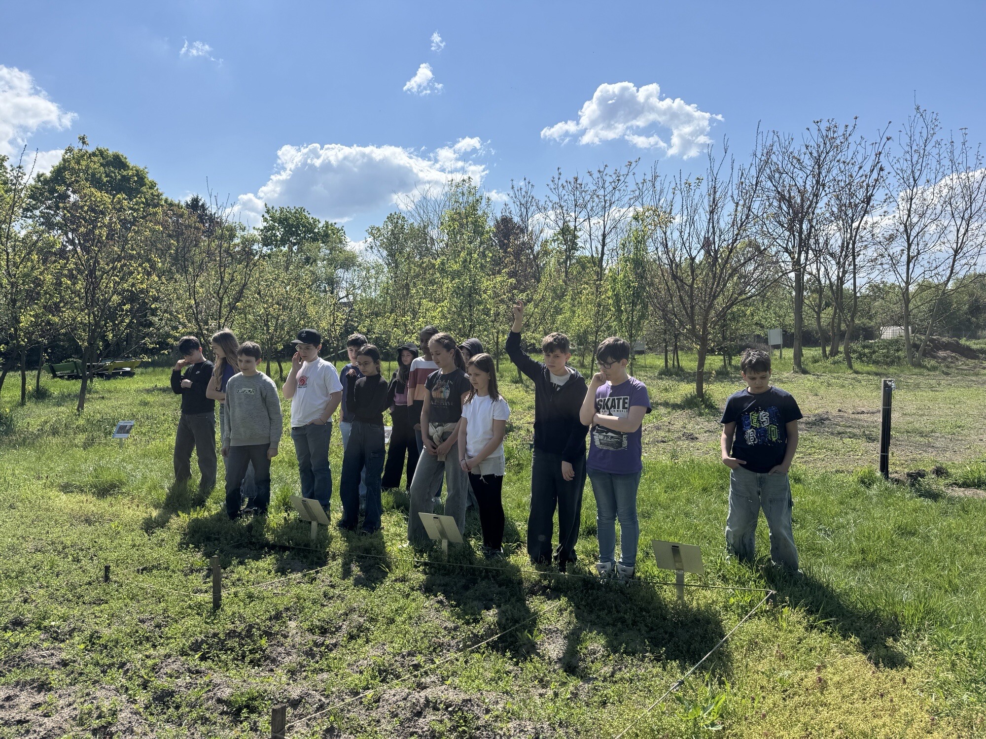 Die Klasse 1VB hat am 22.04. das Welttellerfeld besucht und am Workshop „Wie viel Fläche beansprucht mein Essen?“ teilgenommen. Vor Ort konnten die Schülerinnen und Schüler auf anschauliche Weise entdecken, wie viel Fläche benötigt wird, um verschiedene Lebensmittel zu produzieren. Auf dem Feld waren unterschiedliche Bereiche angelegt, die zeigten, wie viel Platz zum Beispiel für Getreide, Gemüse oder Fleisch notwendig ist. Dadurch wurde schnell klar, dass unsere Ernährungsgewohnheiten einen großen Einfluss auf die Nutzung landwirtschaftlicher Flächen weltweit haben. Besonders spannend war der praktische Teil des Workshops: Die Schülerinnen und Schüler durften selbst aktiv werden und eine eigene Fläche vorbereiten. Mit Rechen und anderen Gartengeräten lockerten sie den Boden, entfernten Steine und machten das Beet bereit für den Anbau.