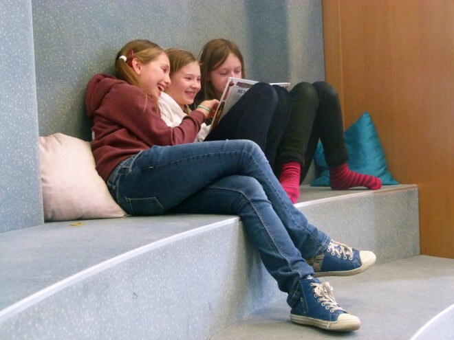 Unsere Bibliothek ist ein wunderbarer Ort und bietet ein vielfältiges Programm. Viele Kinder besuchen sie zum Lesen, um die Hausübung zu machen oder einfach nur zum Entspannen.
