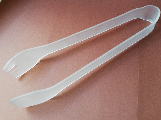 Salatbesteck und Zangen werden aus Plexiglas ausgeschnitten, gefeilt, schliffen und anschließend über der Herdplatte gebogen.
