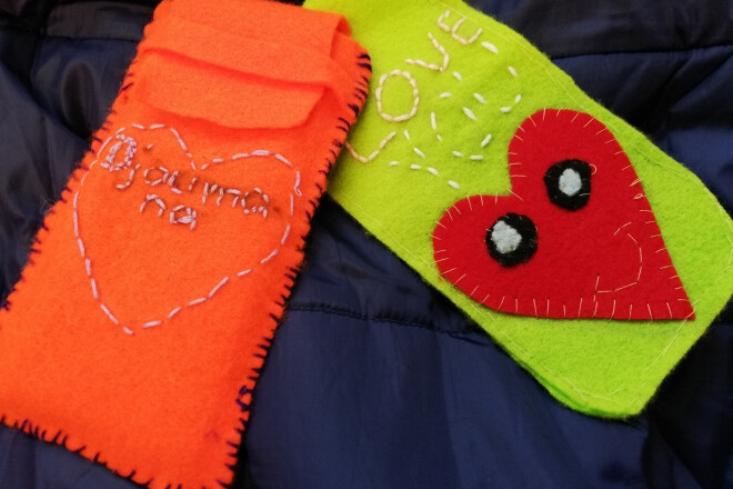 Handytaschen aus Filzstoff. Technik: Nutz- und Zierstiche, Applikation