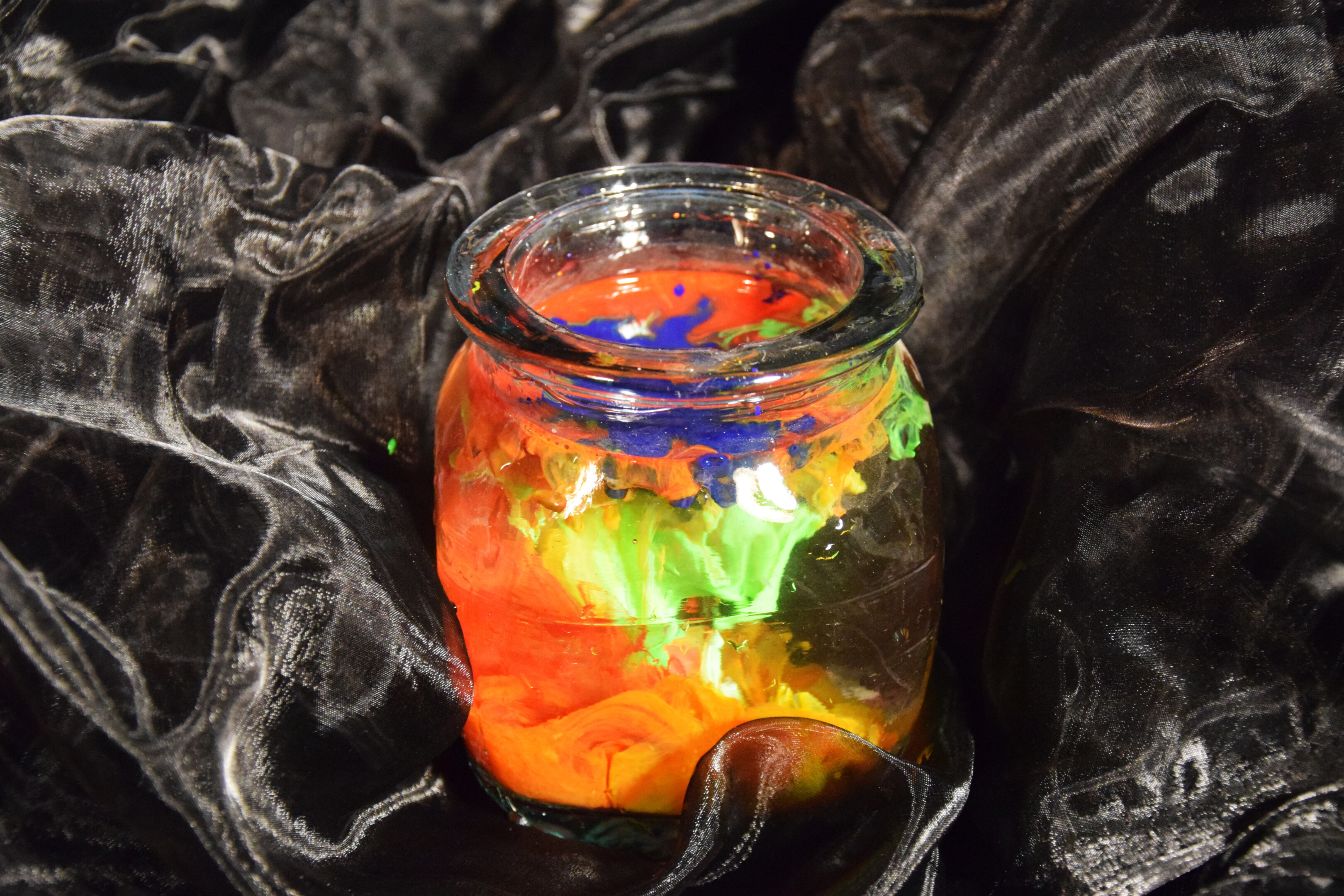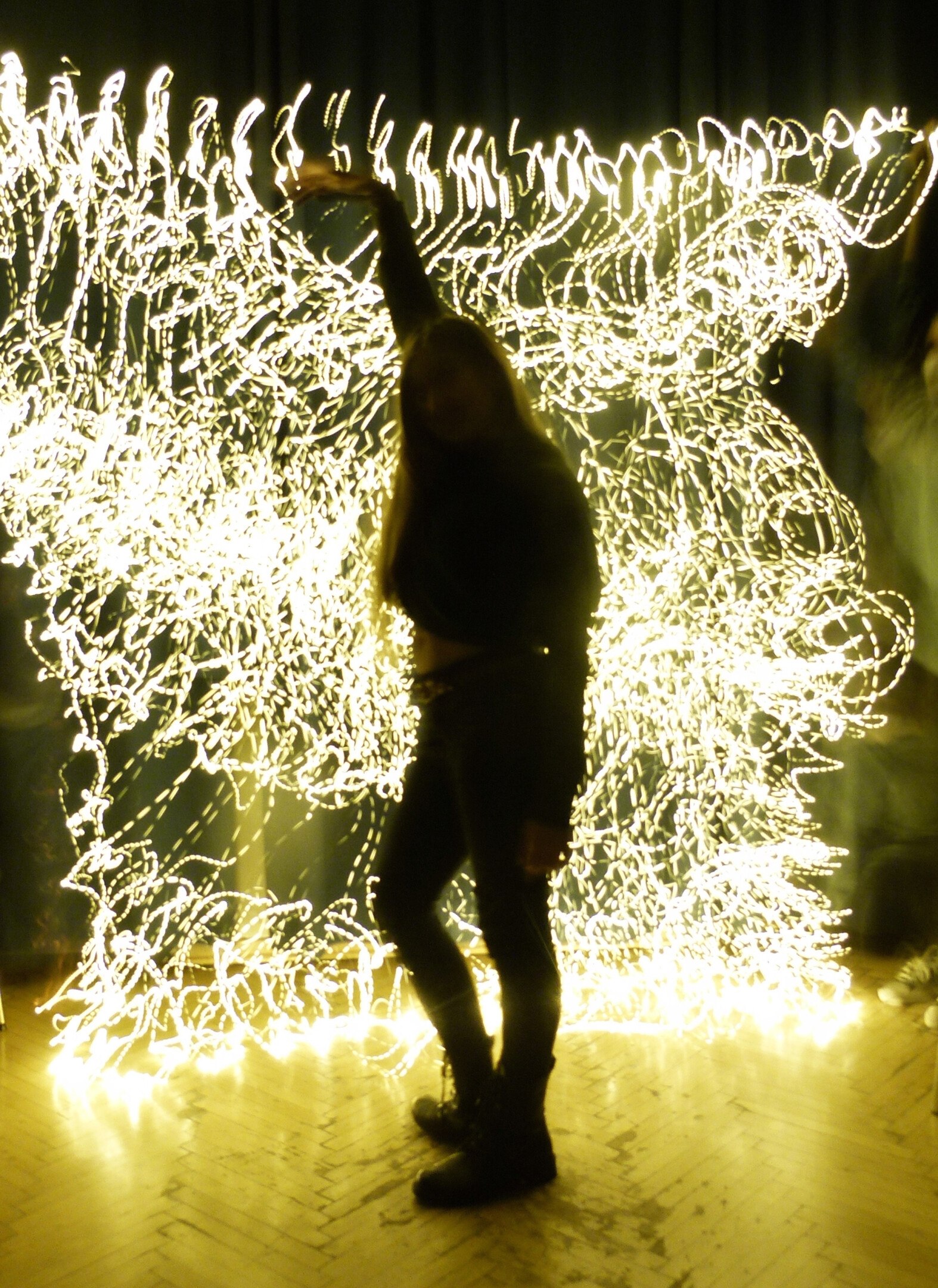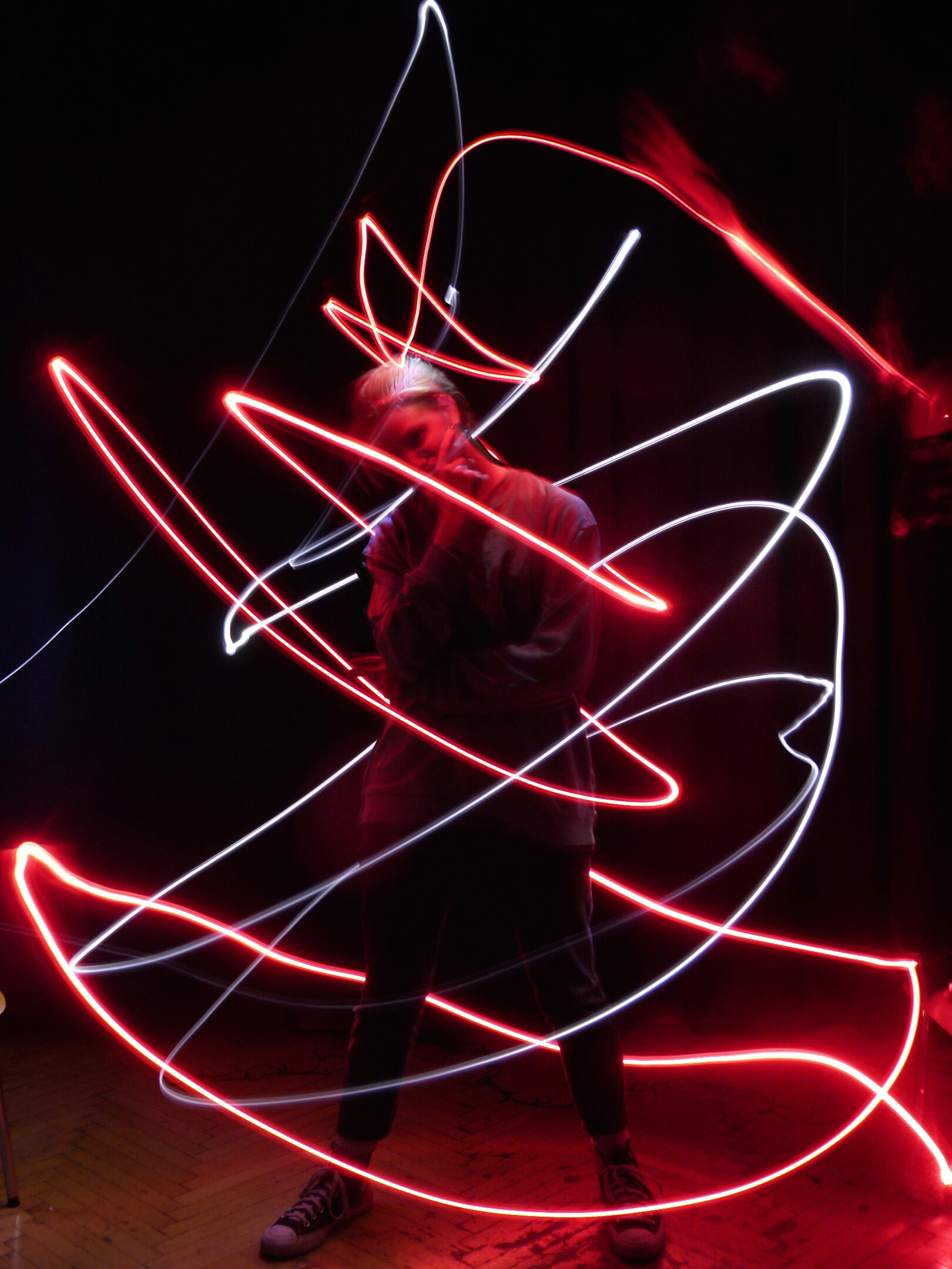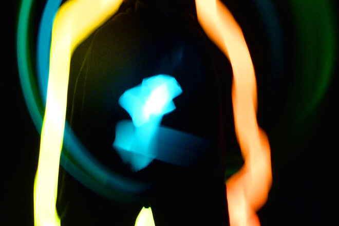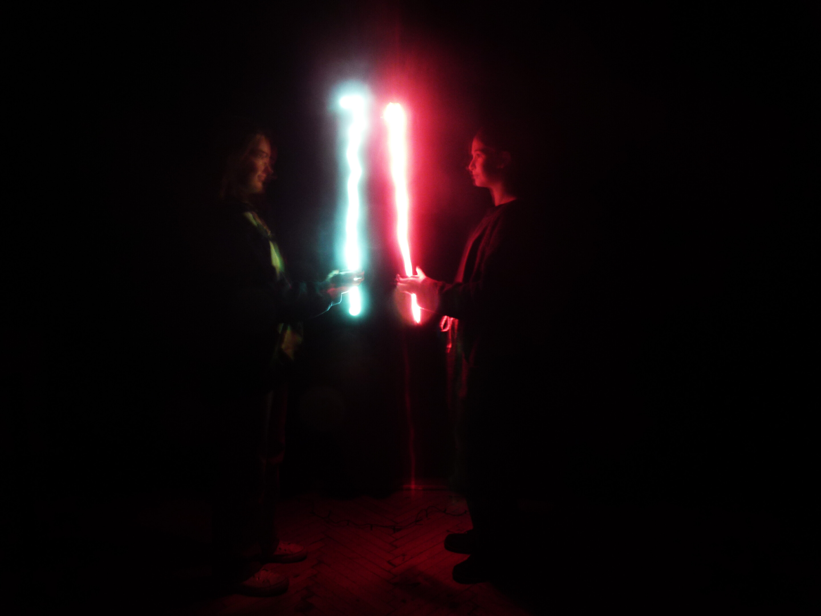 Die beiden Schülergruppen experimentierten mit unterschiedlichen Lichtquellen im dunklen Raum. Es entstanden Lichtzeichnungen durch lange Belichtungszeiten und kreative und spontane Aktionen. Bei den Stillleben mit Gläsern versuchten die Schülerinnen und Schüler das Mischen von Farben im Bild festzuhalten. Der experimentelle Aspekt stand im Vordergrund, die Ergebnisse sind überzeugend und farbenprächtig.