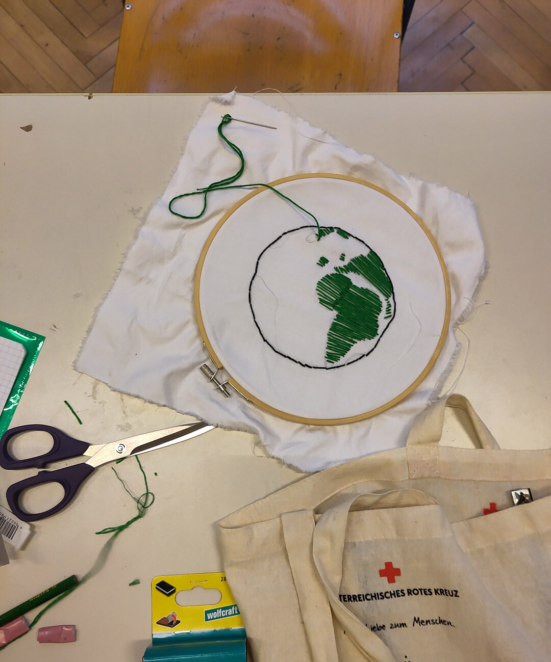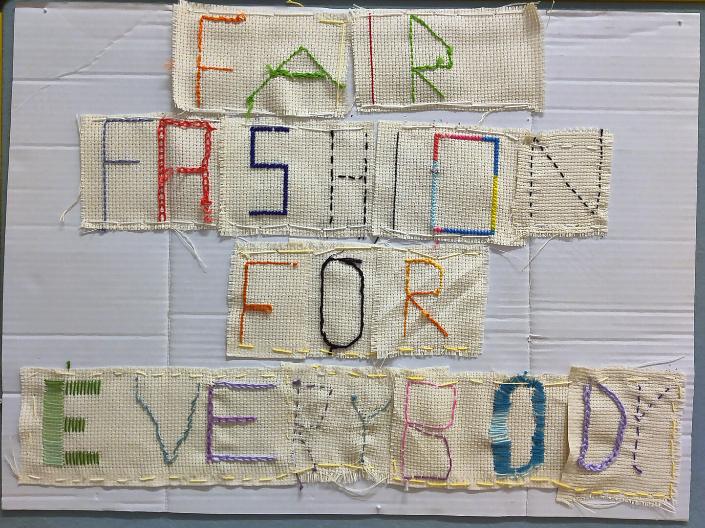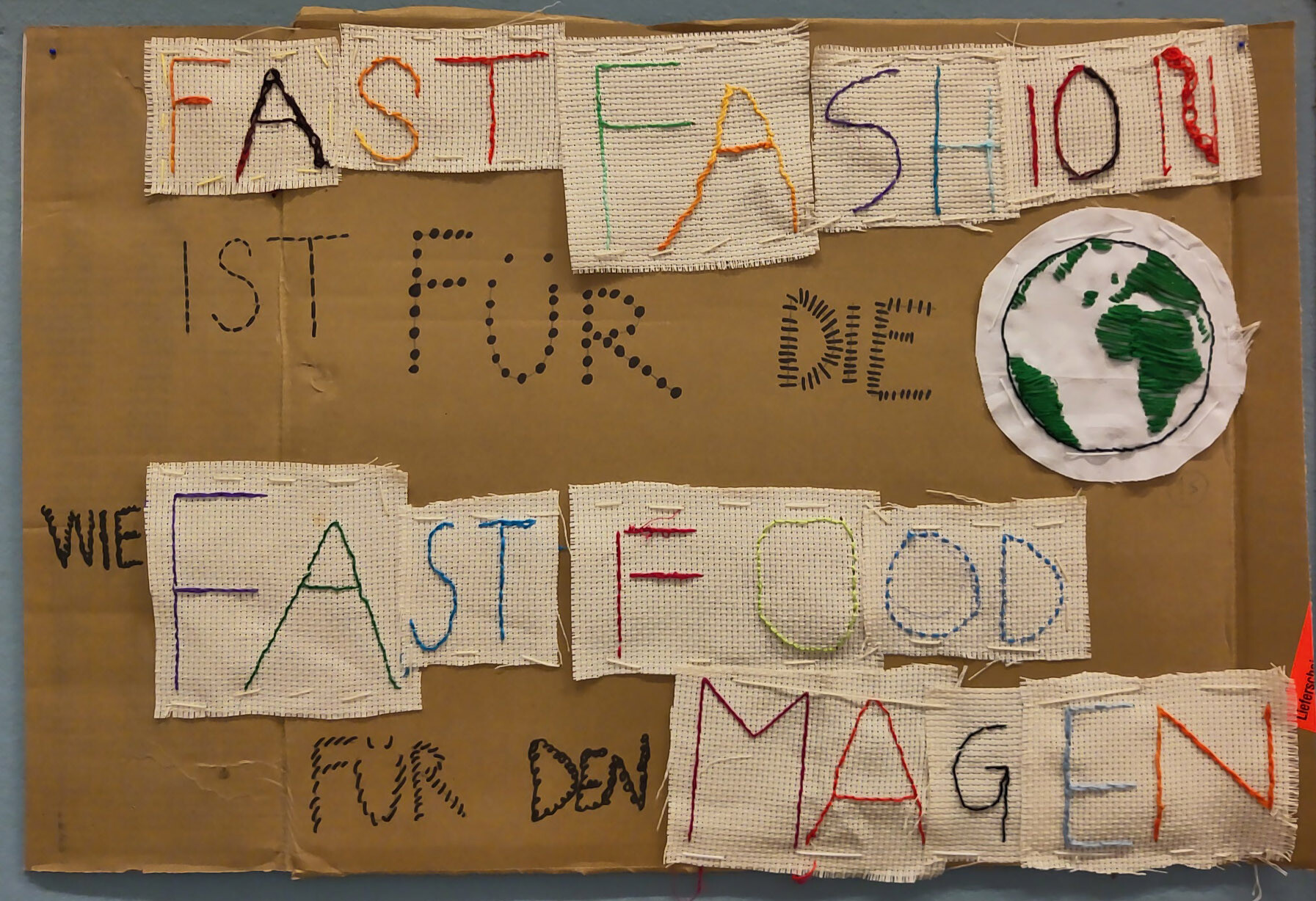 Es handelt sich um eine Mischung aus den englischen Wörtern "craft" und "activism". Die 1D und 1S haben ein Plakat gestickt, um gegen die Fast Fashion-Industrie zu protestieren und fordern eine nachhaltige Mode für alle Menschen.