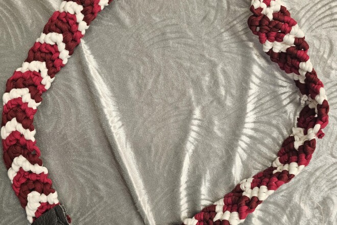 Im Technik und Design-Unterricht wurden Gebrauchsgegenstände hergestellt: geknüpfte Trageriemen und Gürtel aus Spaghettigarn.