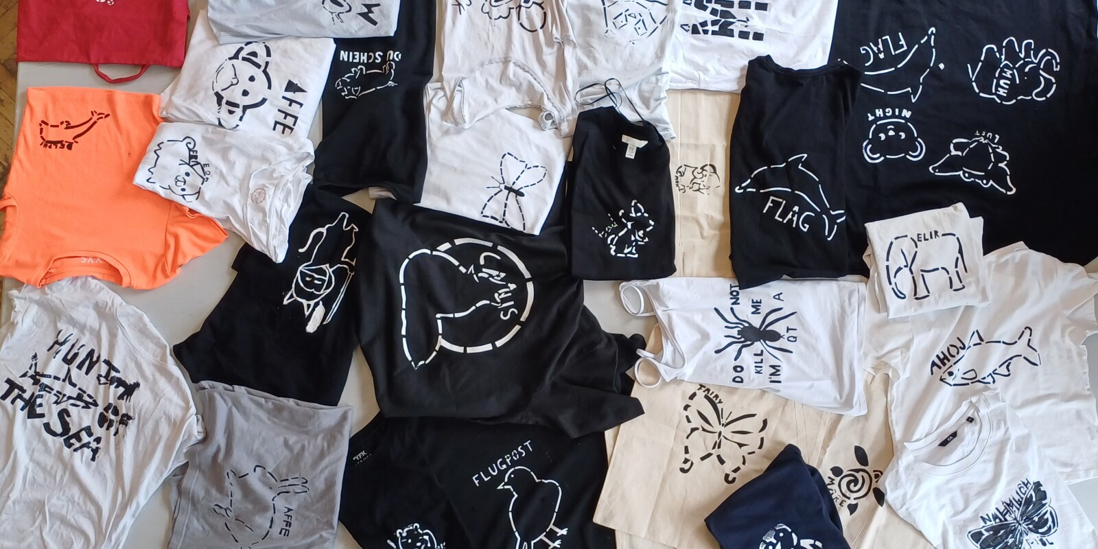 Schüler:innen der 5. Klasse hatten die Aufgabe, das Bild eines Tieres, kombiniert mit einem Wort, auf ein T-Shirt zu drucken. Graphisch-gestalterische Fragestellungen, sowie die Auseinandersetzung und der spielerische Umgang mit kulturspezifischen Bedeutungen von Tieren stießen auf Interesse.
