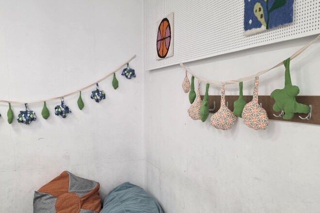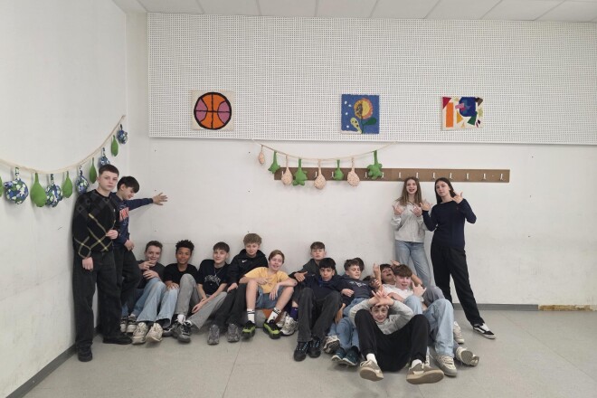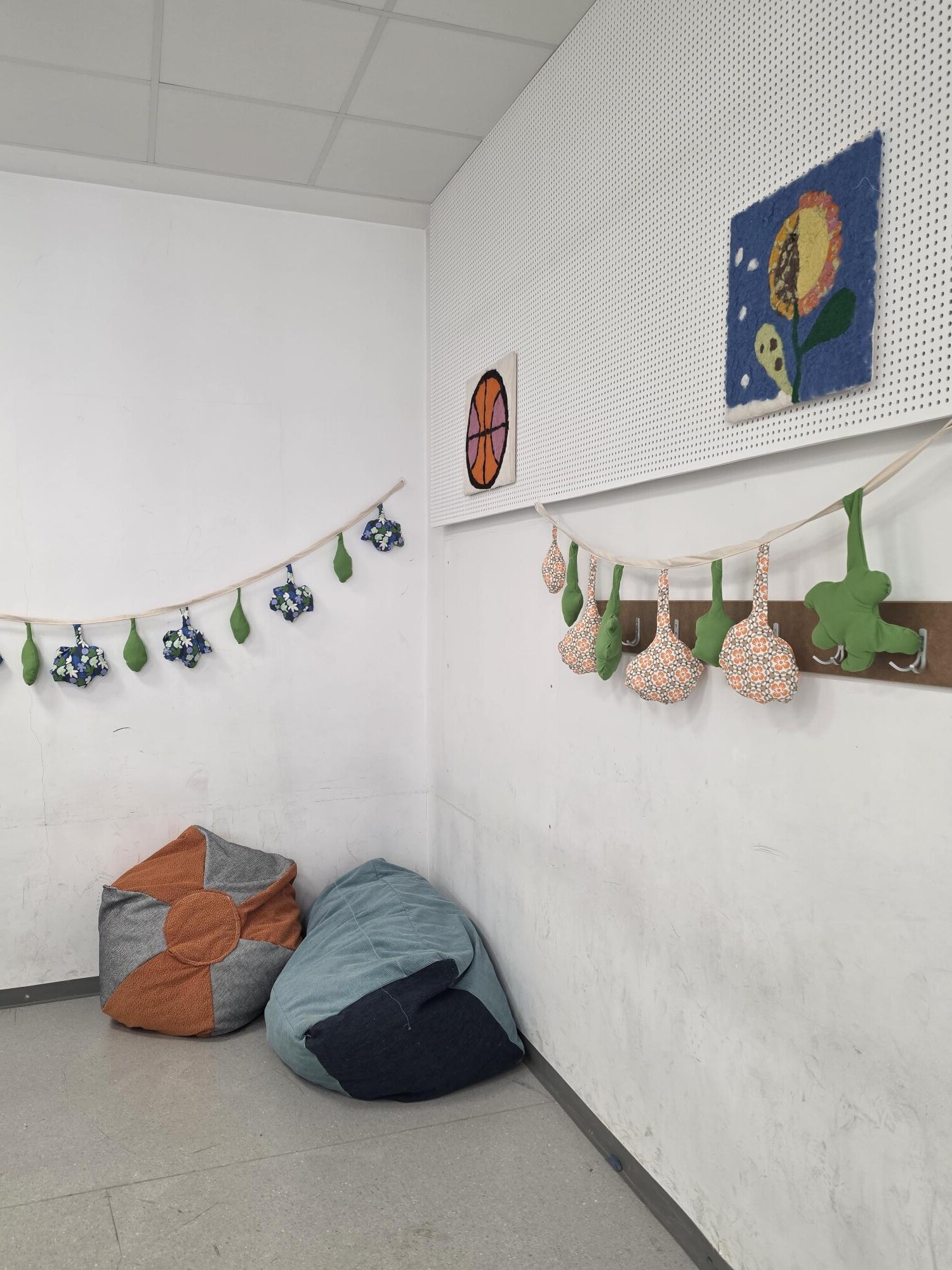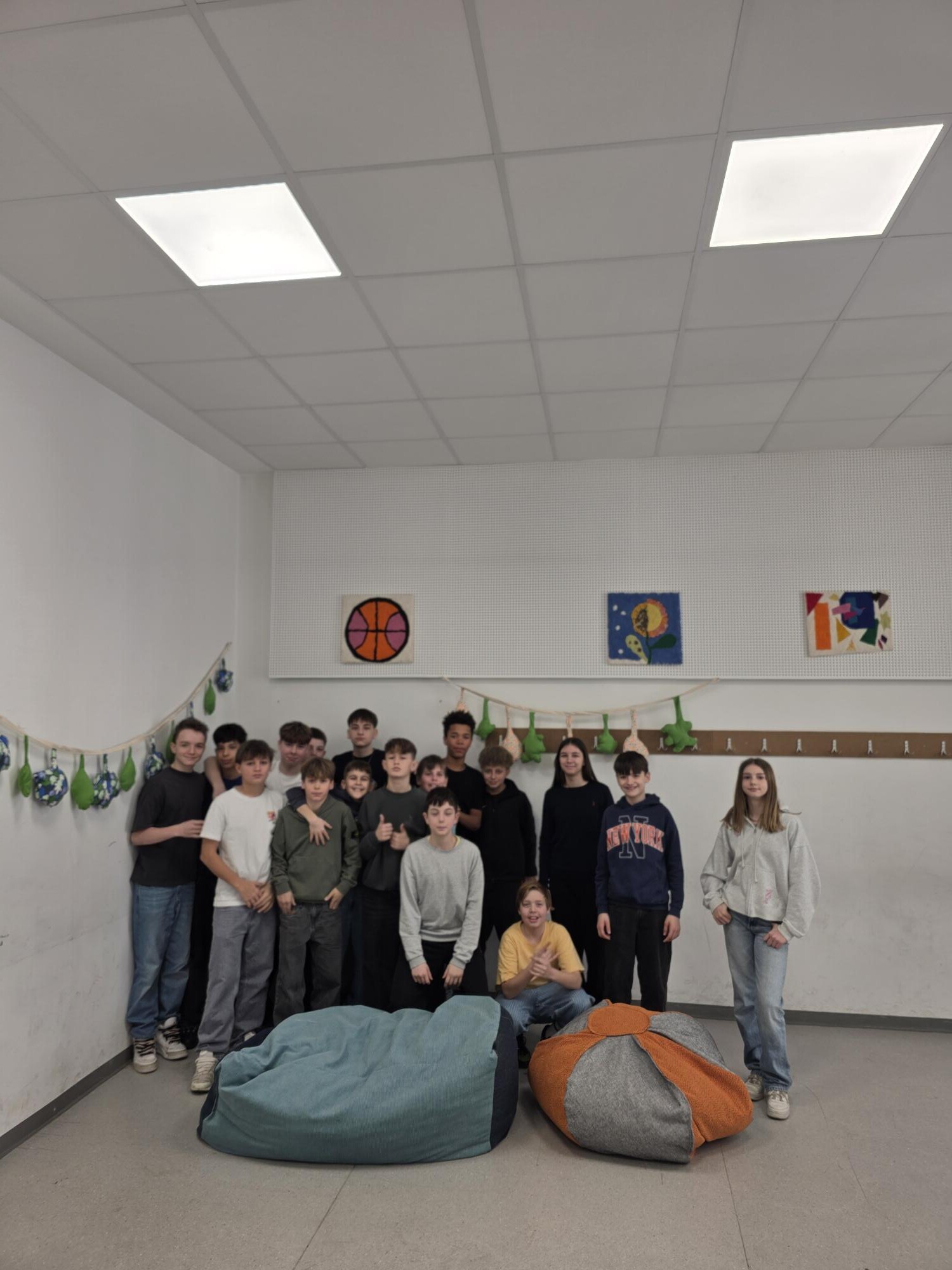 Durch die Förderung des Elternvereins und das Engagement der 3S haben wir es geschafft, den Aufenthaltsraum im Kriehubertrakt mit Filzbildern, Stoffgirlanden und gemütlichen Sitzsäcken umzugestalten. Somit wird das Warten für die Schüler:innen während der Mittagspause zu einem Highlight!